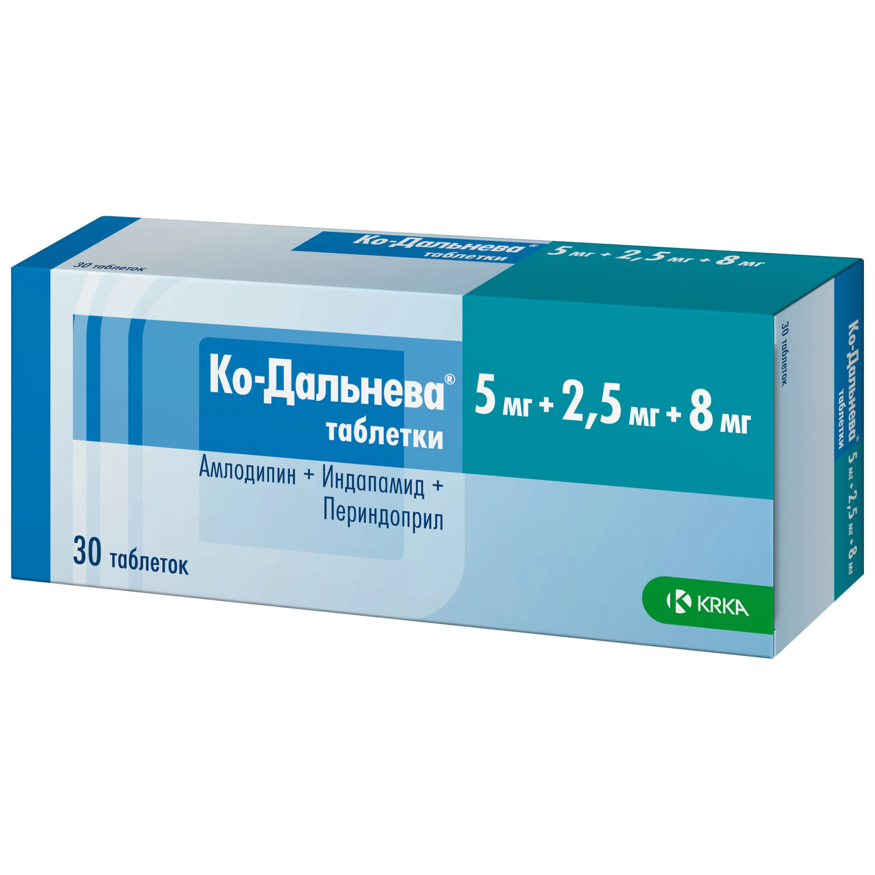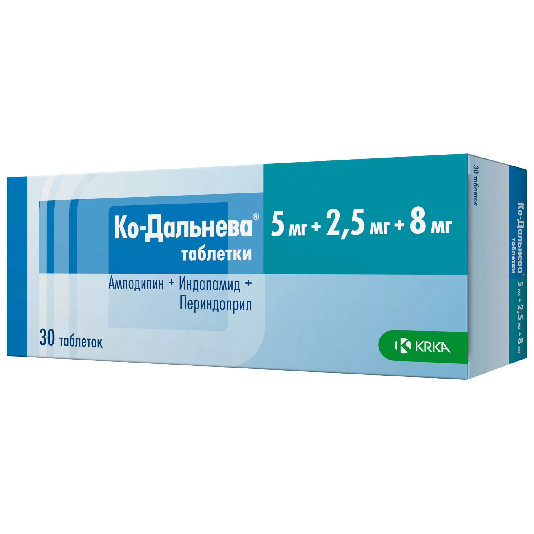 Ко-Дальнева® - комбинированный препарат, содержащий периндоприла эрбумин (ингибитор ангиотензинпревращающего фермента (АПФ)), индапамид (тиазидоподобный диуретик) и амлодипин (блокатор "медленных" кальциевых каналов (БМКК)).