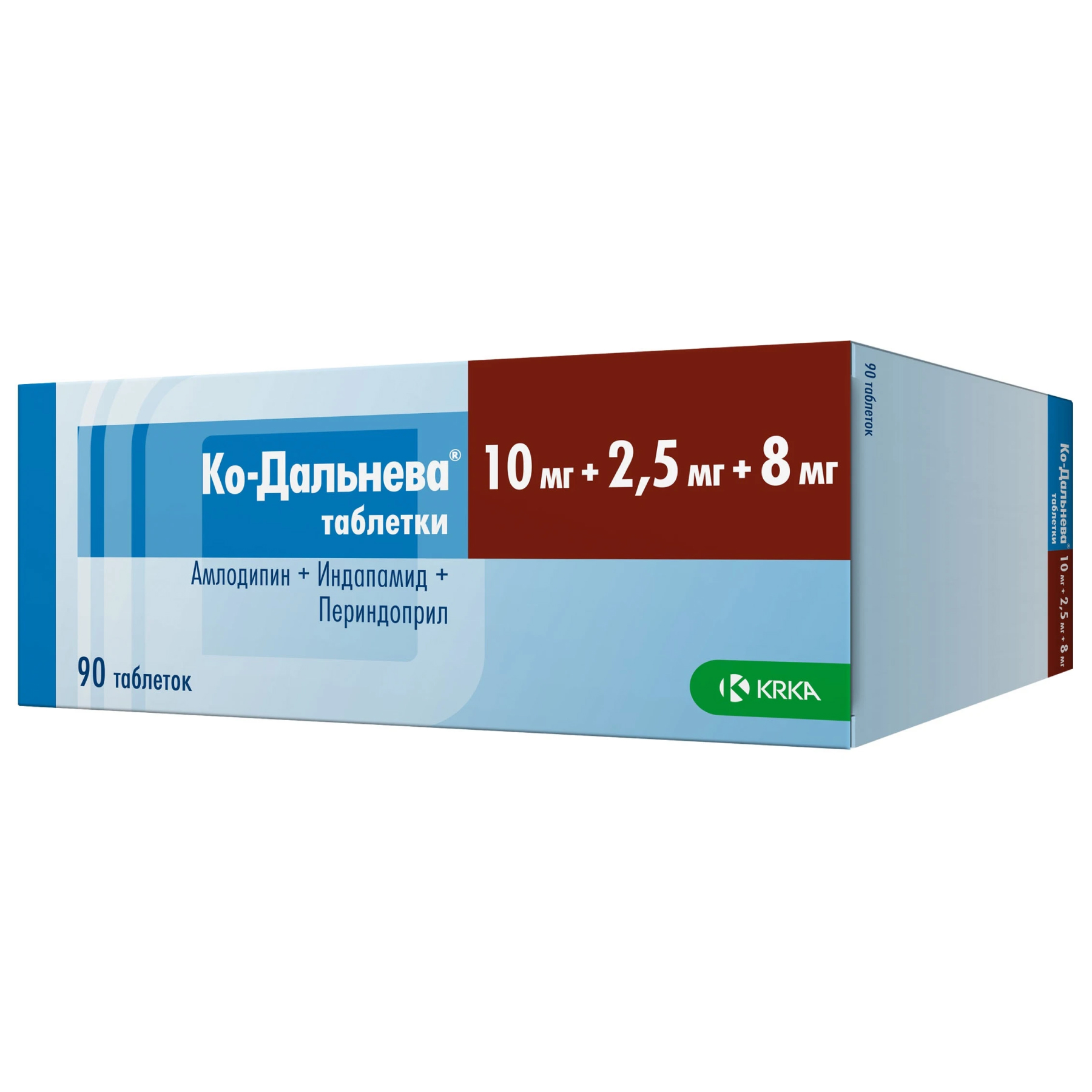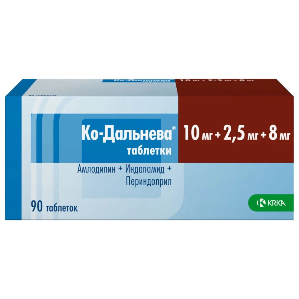 Максимальная суточная доза препарата Ко-Дальнева® составляет 10 мг амлодипина + 2,5 мг индапамида + 8 мг периндоприла.