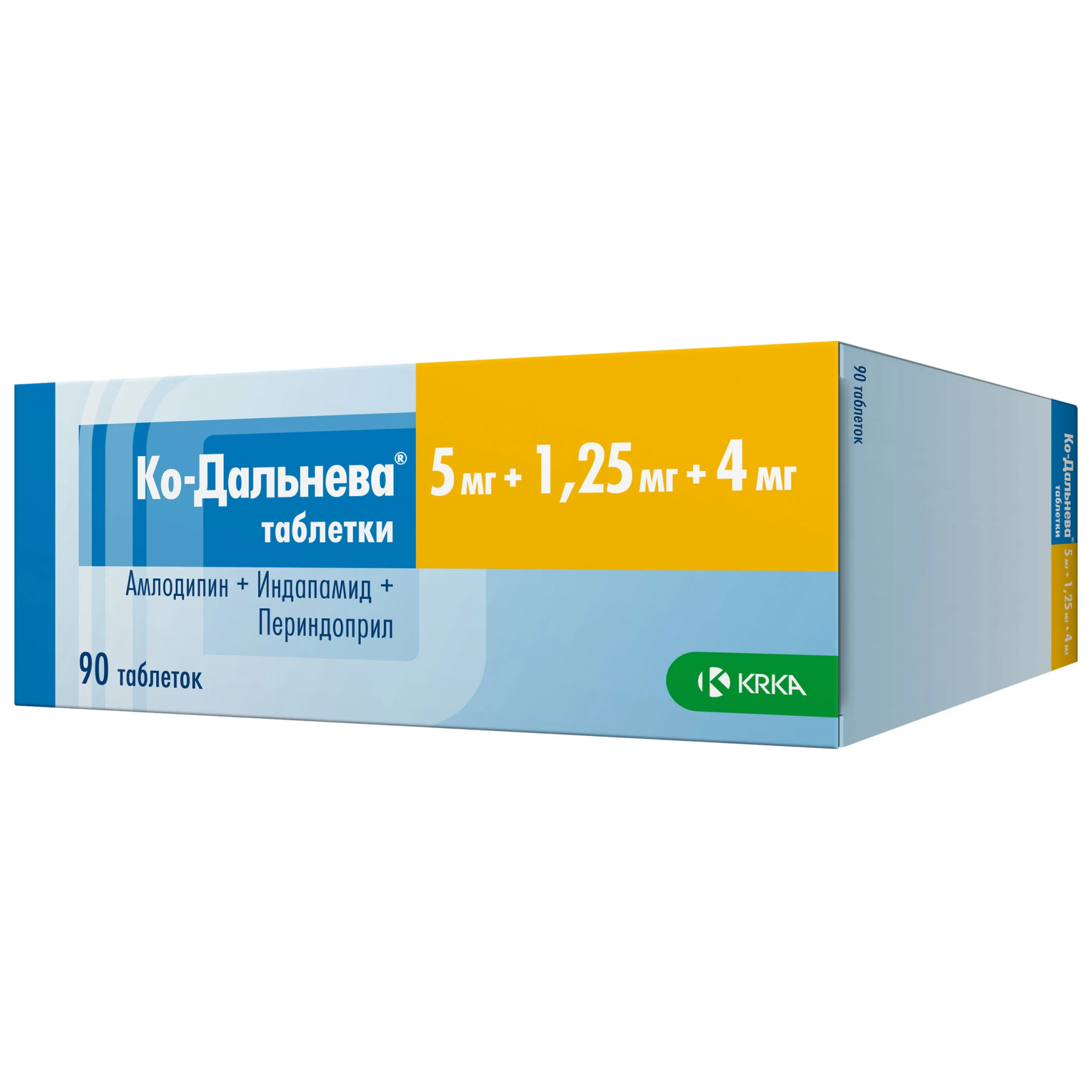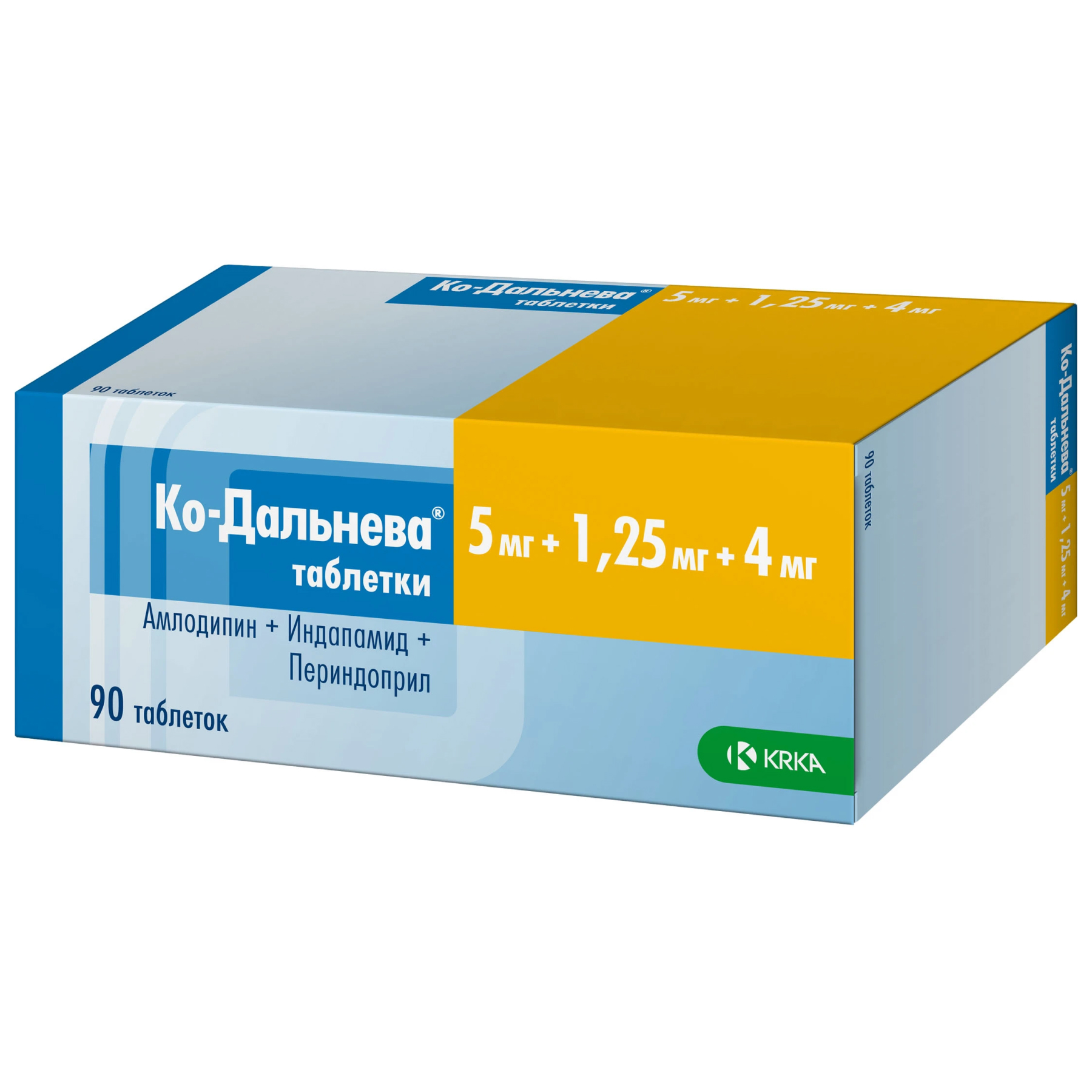Максимальная суточная доза препарата Ко-Дальнева® составляет 10 мг амлодипина + 2,5 мг индапамида + 8 мг периндоприла.