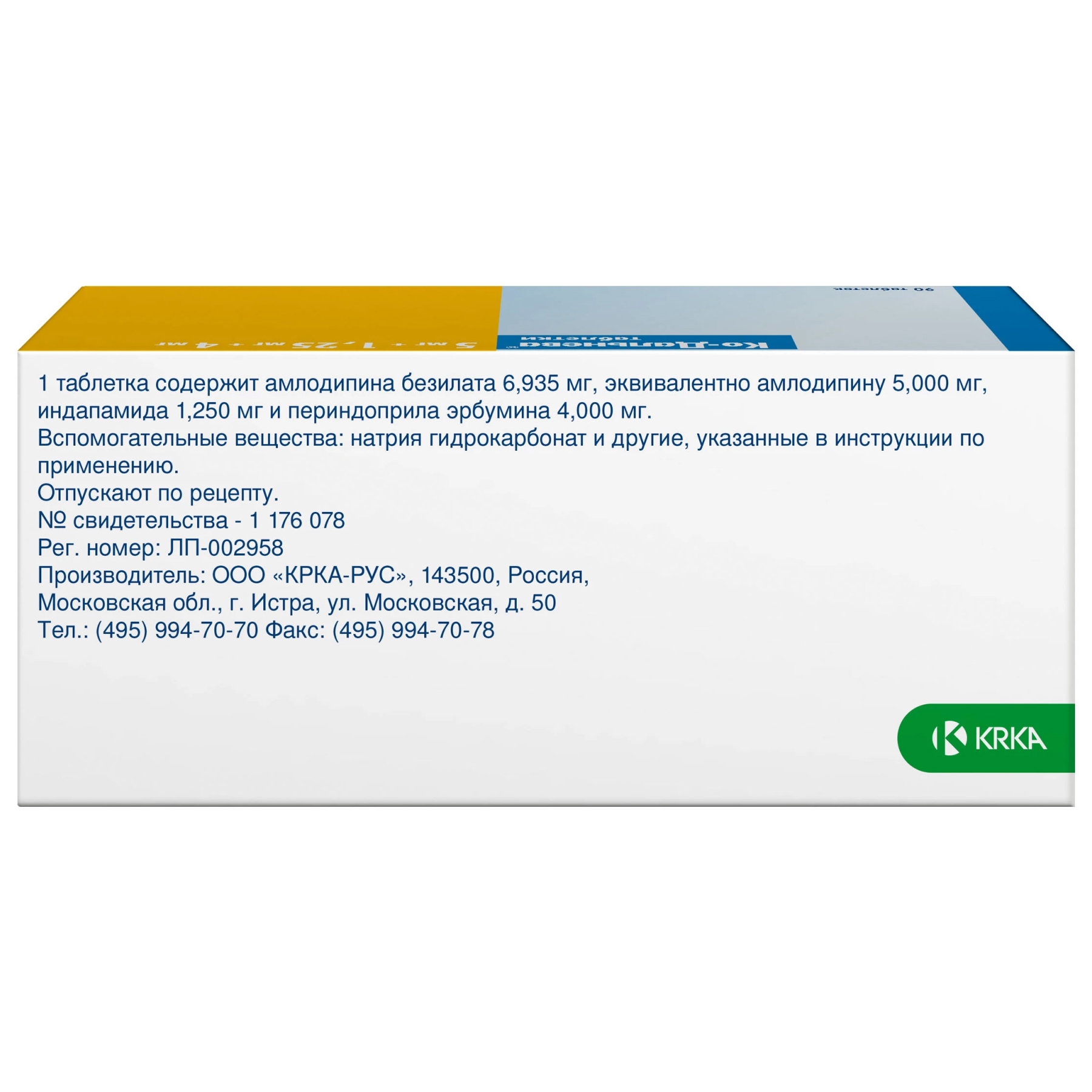 Активные вещества: амлодипин 5 мг, индапамид 1.25 мг, периндоприл 4 мг.