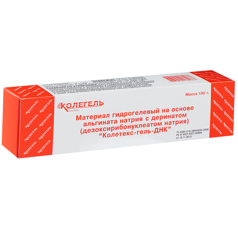 Инструкция по применению Колегель Колетекс-гель-ДНК 100 г материал гидрогелевый на основе альгината натрия с деринатом туба