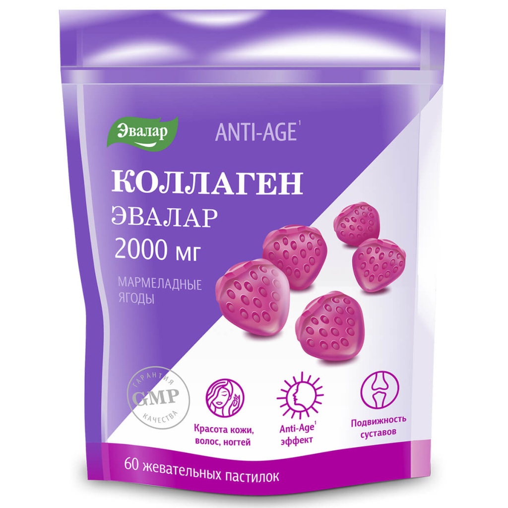 Коллаген мармеладные ягоды Эвалар — уникальная форма гидролизованного коллагена с витамином С в виде вкусных мармеладных ягод. Пожалуй, самая удобная форма коллагена для приема внутрь для тех, кто устал глотать таблетки и капсулы или не любит все эти «танцы» с разведением порошка. Попробуйте мягкие жевательные пастилки с приятным фруктовым вкусом и при этом низкокалорийные!