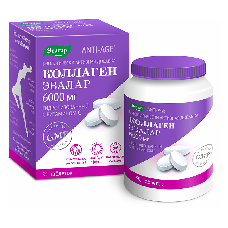 * 6000 мг - содержание коллагена в 6 таблетках (суточный прием).