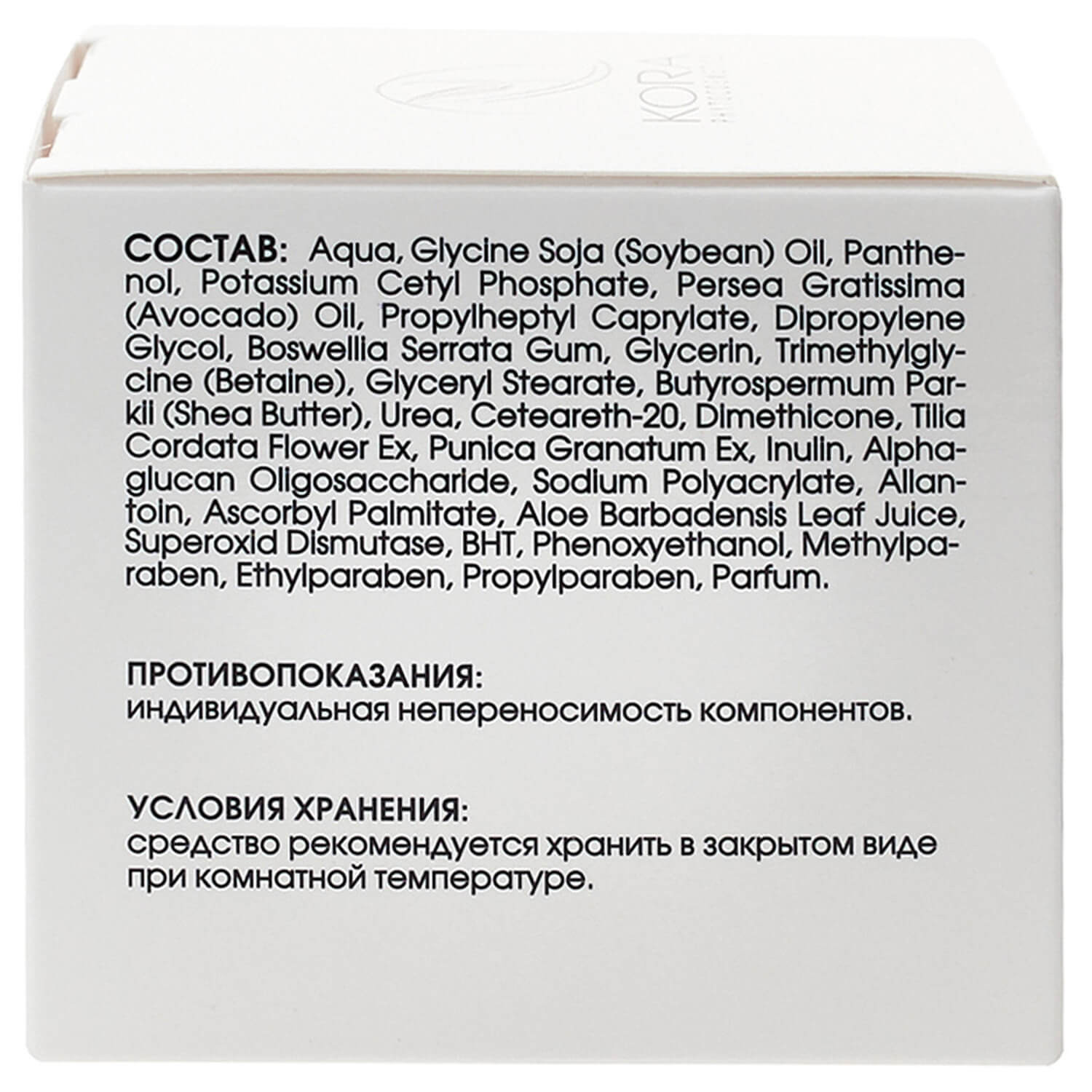 Aqua, Glycine Soja (Soybean) Oil, Panthenol, Potassium Cetyl Phosphate, Persea Gratissima (Avocado) Oil, Propylheptyl Caprylate, Dipropylene Glycol, Boswellia Serrata Gum, Glycerin, Trimethylglycine (Betaine), Glyceryl Stearate, Butyrospermum Parkii (Shea Butter), Urea, Ceteareth-20, Dimethicone, Tilia Cordata Flower Ex, Punica Granatum Ex, Inulin, Alphaglucan Oligosaccharide, Sodium Polyacrylate, Allantoin, Ascorbyl Palmitate, Aloe Barbadensis Leaf Juice, Superoxid Dismutase, BHT, Phenoxyethanol, Methylparaben, Ethylparaben, Propylparaben, Parfum.