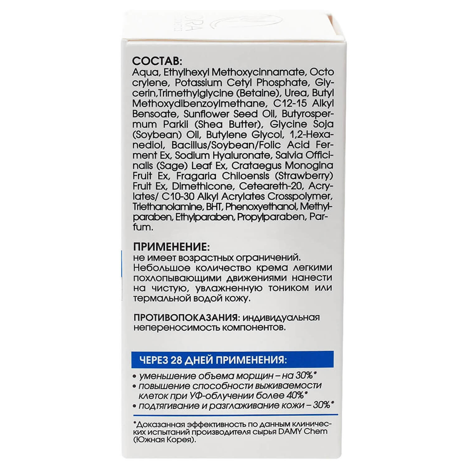 Благодаря ФОЛИЕВОЙ КИСЛОТЕ, которая стимулирует процессы обновления во всех слоях кожи, повышает стресс-устойчивость и стресс-выживаемость клеток, крем активно противодействует фотостарению и появлению ранних возрастных признаков.