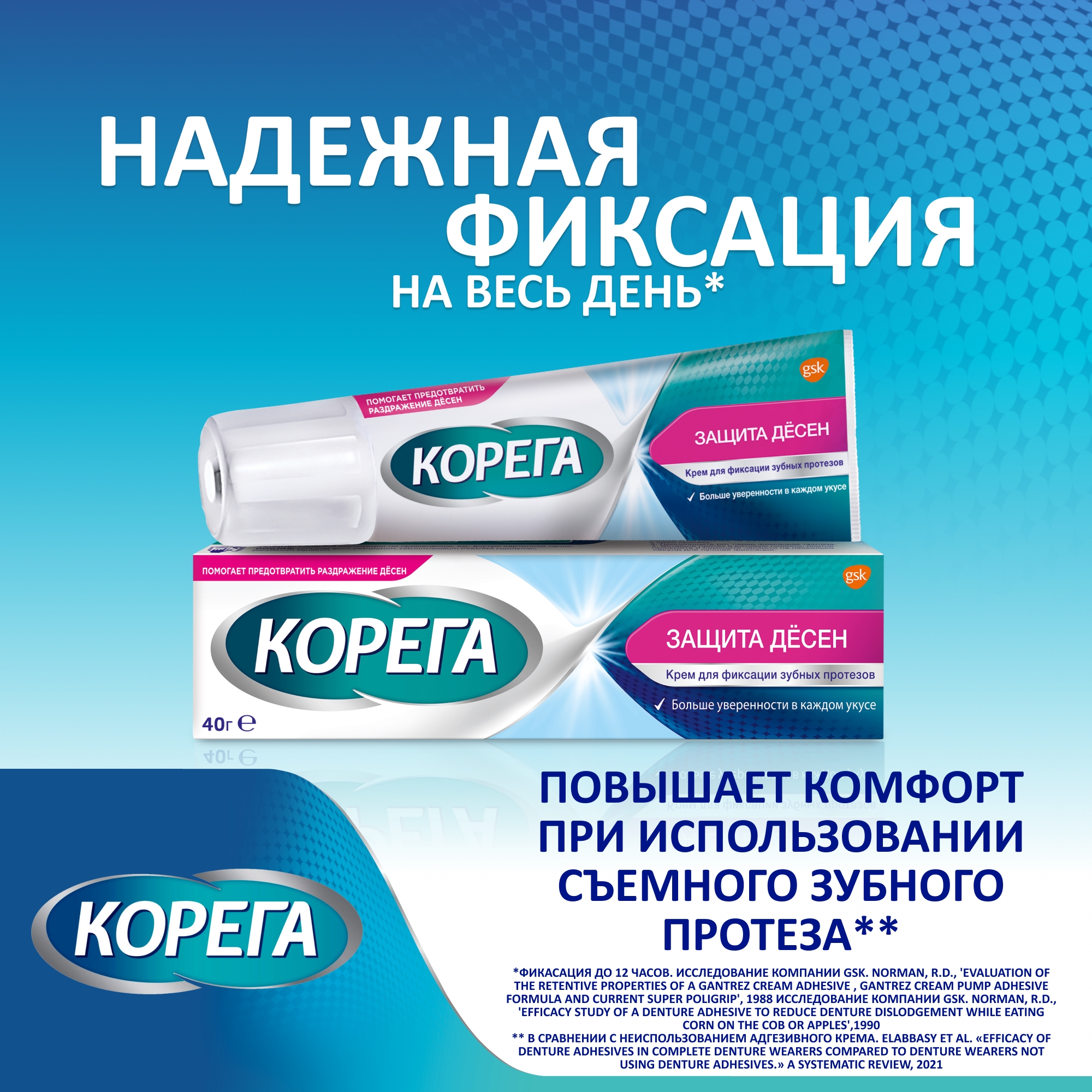 Инструкция по применению Корега 40 г крем для фиксации зубных протезов защита десен