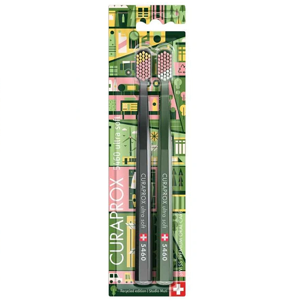 Набор из двух щеток. Щеткa предназначенa для ежедневного очищения зубов. Мягкие активные щетинки (диаметр 0,10мм), щетка обеспечивает качественное и нетравматичное удаление зубного налета. Запатентованная щетина CUREN создает необыкновенно густую и эффективную чистящую поверхность. Щетинки CUREN плотнее, чем нейлон, меньше впитывают влагу и на 60% больше сохраняют свои очищающие свойства. Бережно очищают поверхность эмали, более тщательно разрушают и удаляют зубной налет, особенно в зоне десневой борозды. Щетка имеет компактную головку с легким наклоном для лучшей очистки всех горизонтальных и вертикальных поверхностей зубов. Восьмигранная ручка из легкого полипропилена помогает чистить зубы под правильным углом. Щетина запатентованное полиэстровое волокно CUREN. Основа щетки - гигиенически безопасный полипропилен.