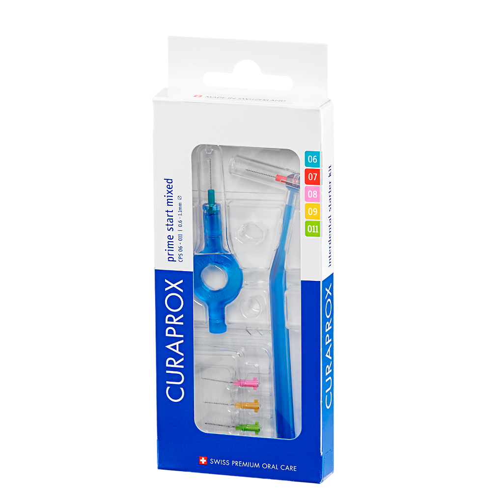 Набор для ежедневного гигиенического ухода за межзубными промежутками Prime Start mixed: 5 ершиков CPS 06, 07, 08, 09, 011 с держателем UHS 409 и UHS 470.