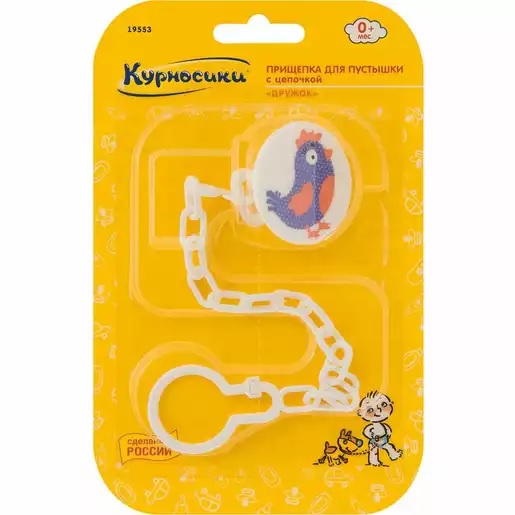 Прищепка для пустышки сцепочкой незаменима напрогулках: пустышка, прикрепленная кцепочке нетеряется инепачкается.