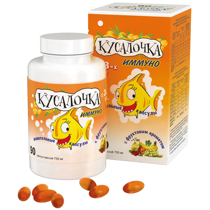 КУСАЛОЧКА ИММУНО – витаминный комплекс для детей, содержит биологически активные компоненты, способствующие укреплению иммунитета