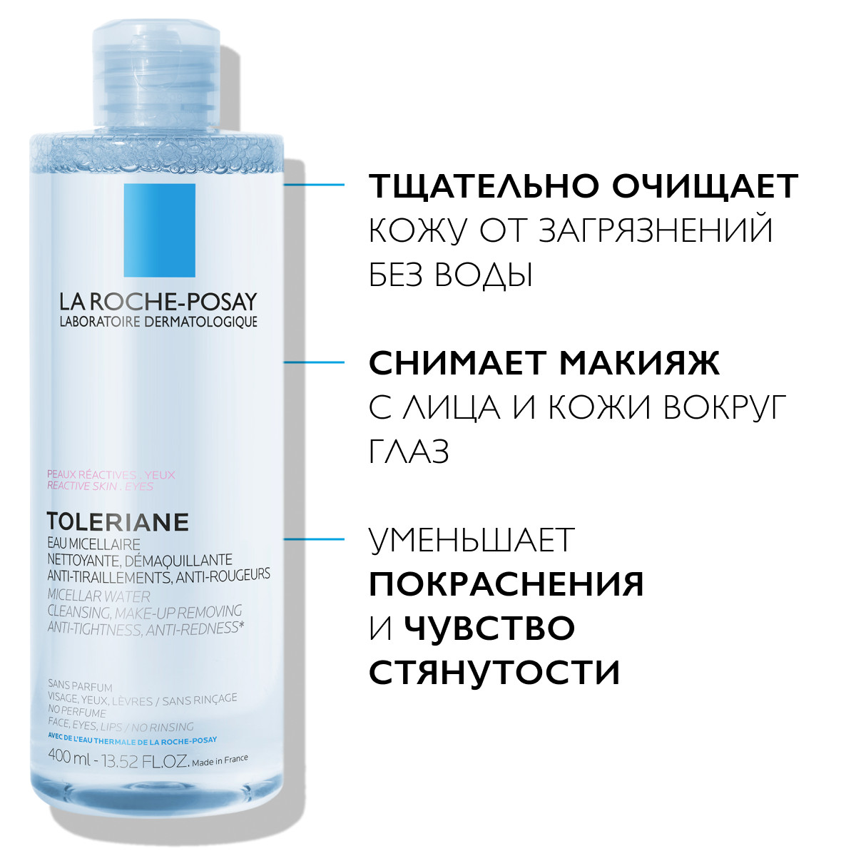 Инструкция по применению La Roche-Posay Toleriane 400 мл мицеллярная вода для чувствительной и склонной к аллергии кожи лица и глаз