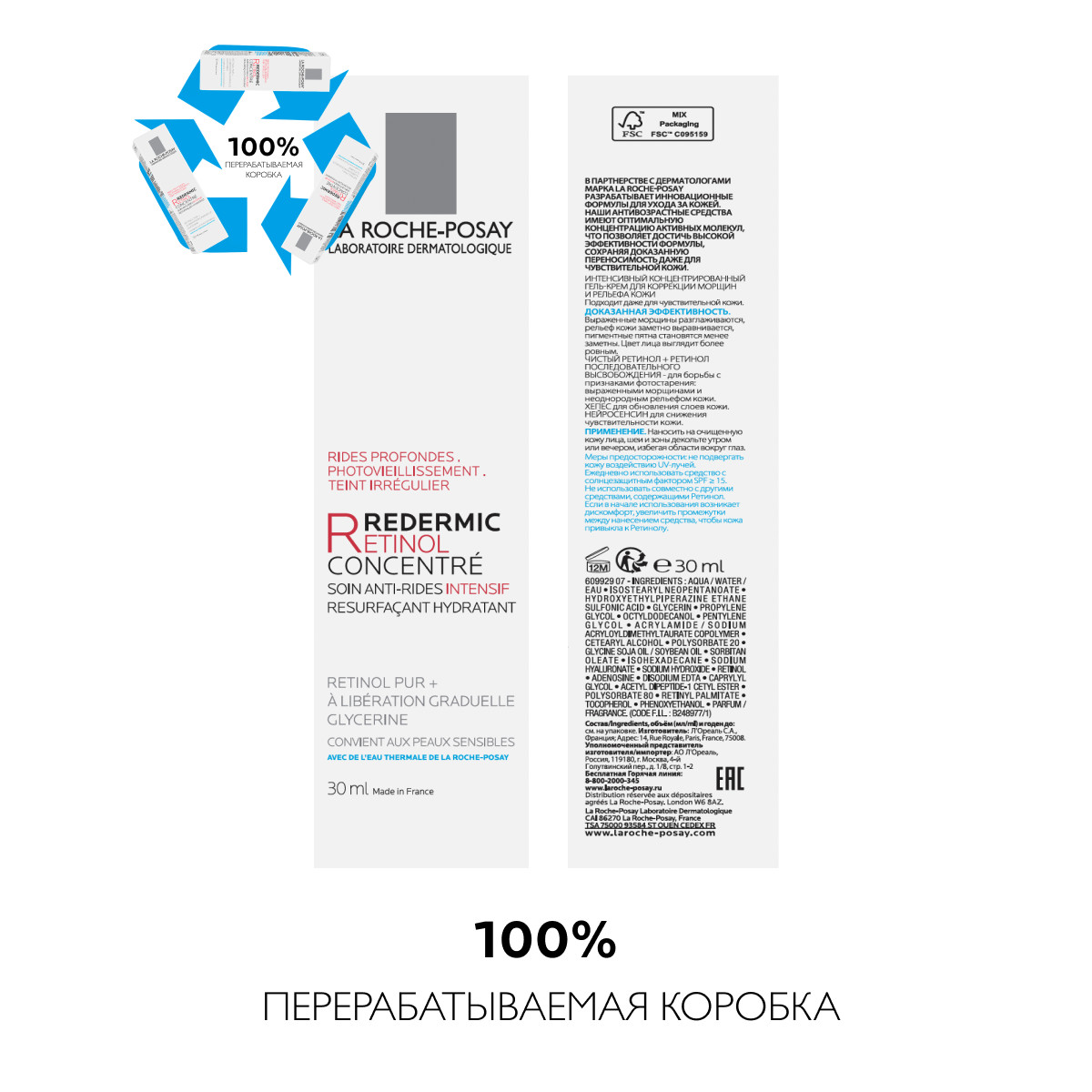 Ретинол известен как один из наиболее эффективных ингредиентов для борьбы с признаками фотостарения: выраженными морщинами и неровным тоном лица. Специальный обновляющий комплекс в составе крема Redermic Retinol сочетает чистый Ретинол и Ретинол последовательного высвобождения, что позволяет постепенно достигнуть оптимальной концентрации Ретинола в коже. Таким образом, обеспечивается высокая эффективность коррекции признаков старения и переносимость даже чувствительной кожей. Новая формула улучшена за счет добавления Хепеса, который способствует обновлению слоев кожи, и Нейросенсина, который снижает чувствительность кожи.