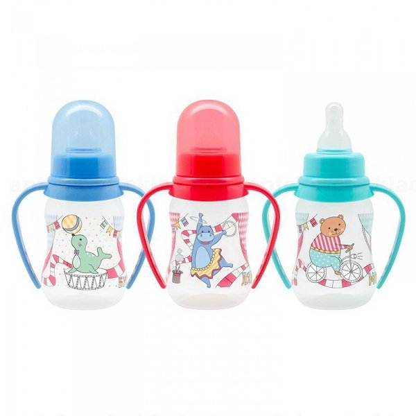 Бутылочка, кольцо, колпачок, ручки - полипропилен, соска молочная - силикон.
