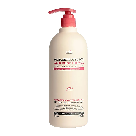Для поврежденных и окрашенных волос специалисты La`dor рекомендуют использовать кондиционер Damaged Protector Acid Conditioner с низким уровнем pH 4.5 и набором биоактивных компонентов для защиты и восстановления шевелюры. Благодаря протеинам гидролизованного шелка и растительным экстрактам средство укрепляет и восстанавливает кутикулу, закрепляет пигменты в структуре волоса, избавляет пряди от сухости, ломкости и тусклости. Формула продукта обогащена экстрактами освежающей мяты, успокаивающей ромашки и предупреждающего жирность бергамота. В состав также входят протеины шелка, экстракты бораго, лаванды, розмарина и монарды. Возвращая шевелюре природную привлекательность и продлевая эффект окрашивания, кондиционер не утяжеляет пряди, не провоцирует их быстрого загрязнения.
