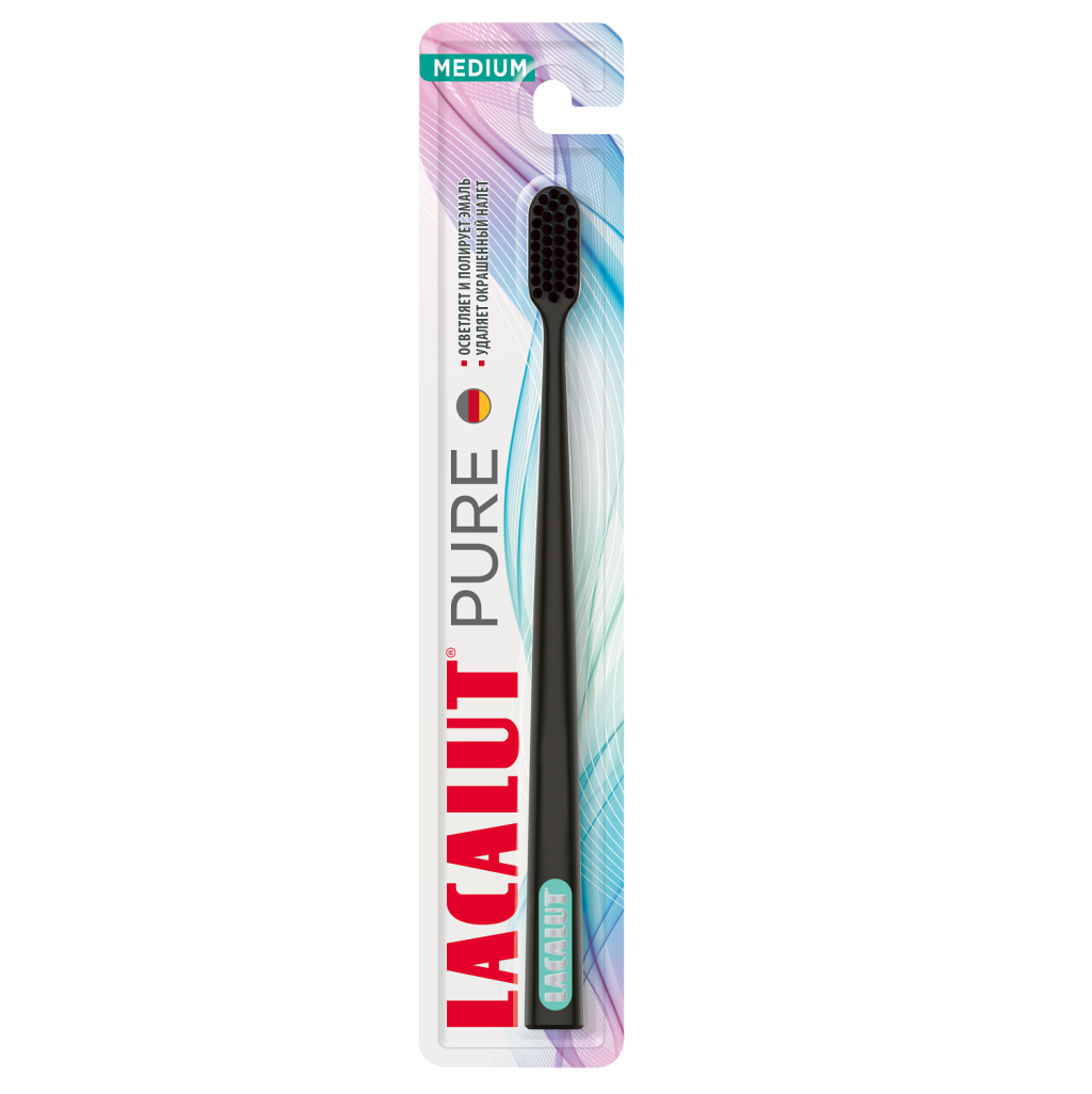 Зубная щетка Lacalut pure с мягкой щетиной подойдет подросткам и взрослым с повышенной чувствительностью дентина, а также при воспалении и кровоточивости десен.