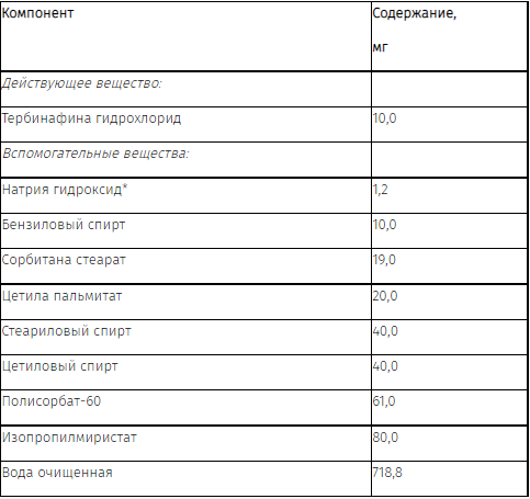 Случайный прием внутрь содержимого одной тубы 30 г с кремом, содержащей 300 мг тербинафина гидрохлорида (эквивалентно 264 мг тербинафина основания), сравним с приемом одной таблетки тербинафина 250 мг (однократная доза для приема внутрь для взрослых).