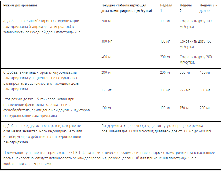 При отмене сопутствующих ПЭП или добавлении на фоне приема ламотриджина ПЭП или других лекарственных препаратов необходимо принимать во внимание то, что это может оказать влияние на фармакокинетику ламотриджина.