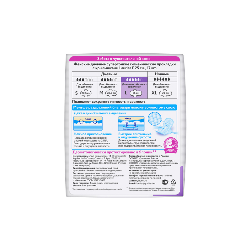 Инструкция по применению Laurier F 17 шт прокладки гигиенические женские дневные супертонкие с крылышками 25см