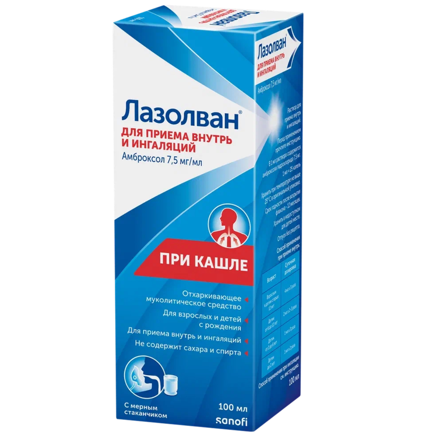 Раствор для приема внутрь (7. 5 мгмл) назначают взрослым в течение первых 2-3 дней - по 4 мл, а затем по 2 мл 3 раза в сутки или по 4 мл 2 раза в сутки. детям до 2 лет - 1 мл 2 раза в сутки, 2-5 лет - 1 мл 3 раза в сутки, 5-12 лет - 2 мл 2-3 раза в сутки. Сироп (3 мгмл) назначают взрослым - в первые 2-3 дня по 10 мл, а затем по 5 мл 3 раза в сутки или по 10 мл 2 раза в сутки. В тяжелых случаях заболевания дозу не уменьшают в течение всего курса лечения. Детям 5-12 лет назначают по 15 мг 2-3 раза в сутки, 2-5 лет - 7. 5 мг 3 раза в сутки, до 2 лет - 7. 5 мг 2 раза в сутки. В виде ингаляций назначают взрослым и детям старше 5 лет по 15-22. 5 мг, детям до 2 лет - 7. 5 мг, детям от 2-5 лет - 15 мг 1-2 раза в сутки.