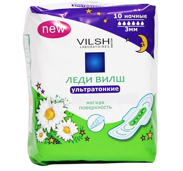 Леди Вилш Прокладки ультратонкие ночные с крылышками 10 шт в 1 уп.