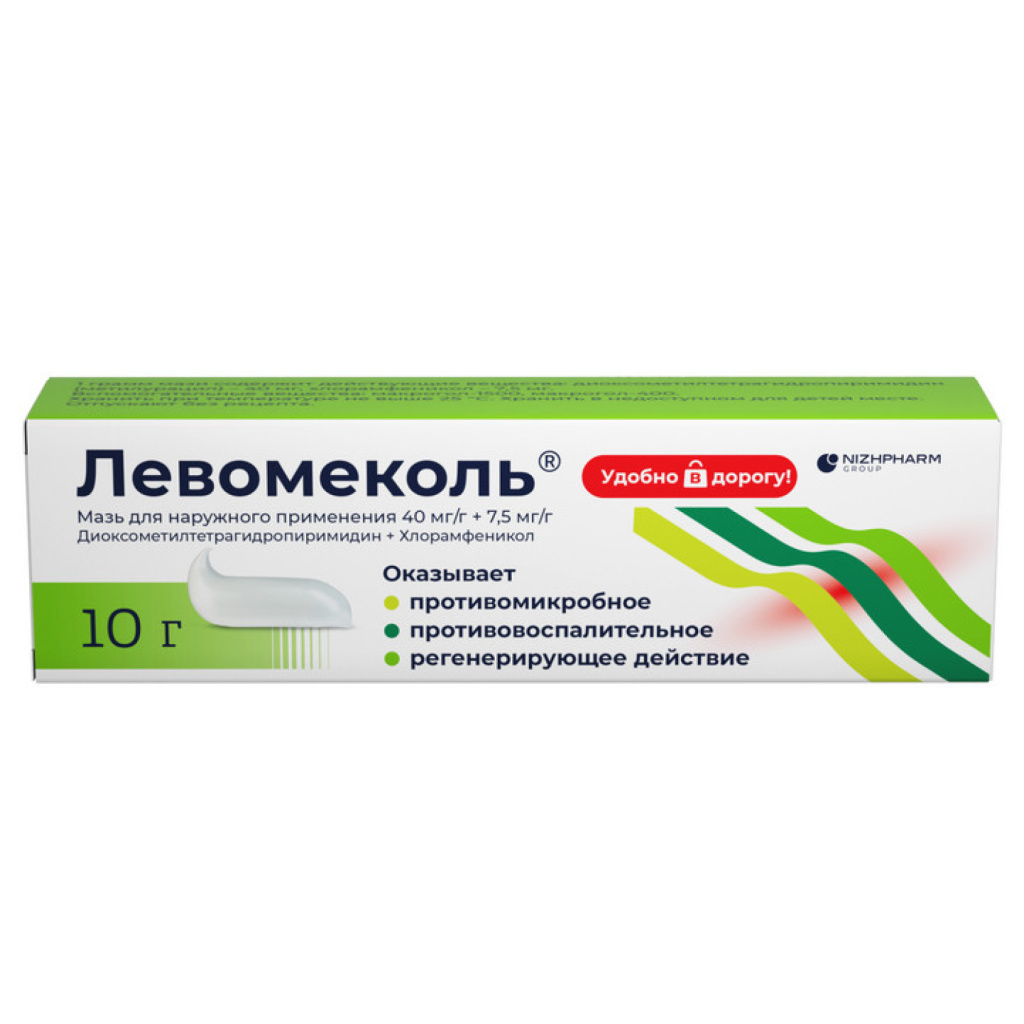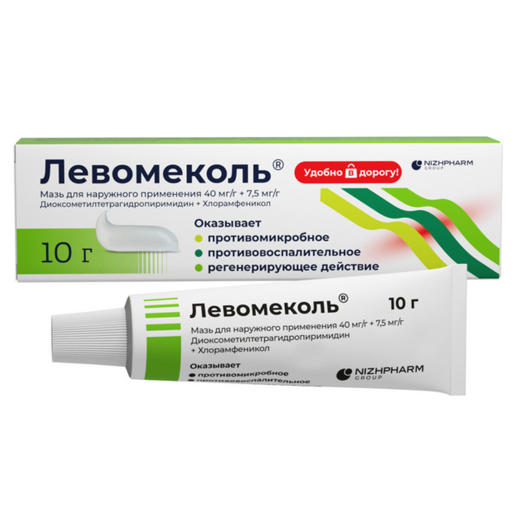 действующие вещества - диоксометилтетрагидропиримидин (метилурацил) - 40 мг, хлорамфеникол - 7,5 мг;