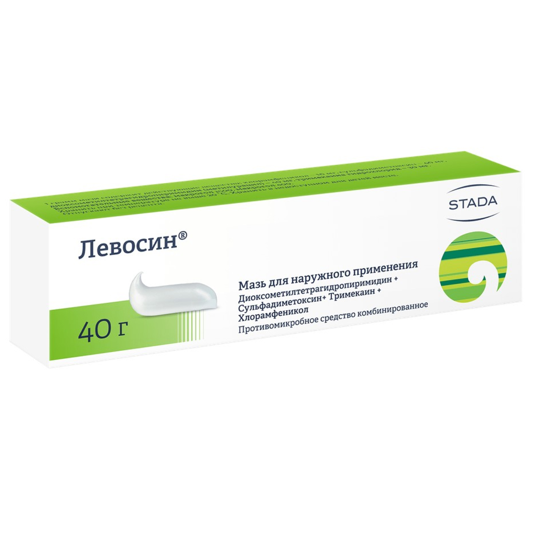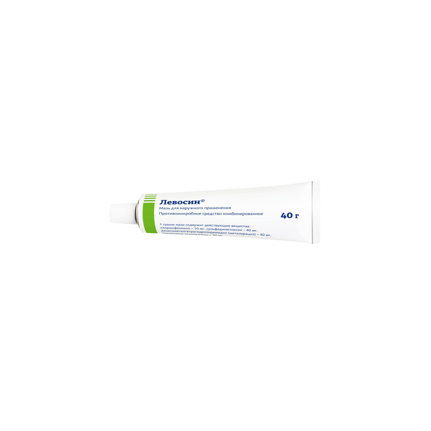 Мазь легко проникает вглубь тканей, транспортируя связанные с полиэтиленгликолем левомицетин и сульфадиметоксин. В силу высокой гидратационной активности Левосин® в короткие сроки (2-3 дня) обычно обеспечивает ликвидацию перифокального отека и очищение раны от гнойно-некротического содержимого. Метилурацил, входящий в состав препарата, ускоряет заживление ран, стимулирует клеточные факторы защиты. Тримекаин является местноанестезирующим средством, действует более сильно и более продолжительно, чем прокаин (новокаин), мало токсичен, не оказывает раздражающего действия. Левосин® не обладает способностью кумулировать и не имеет местнораздражающих свойств.