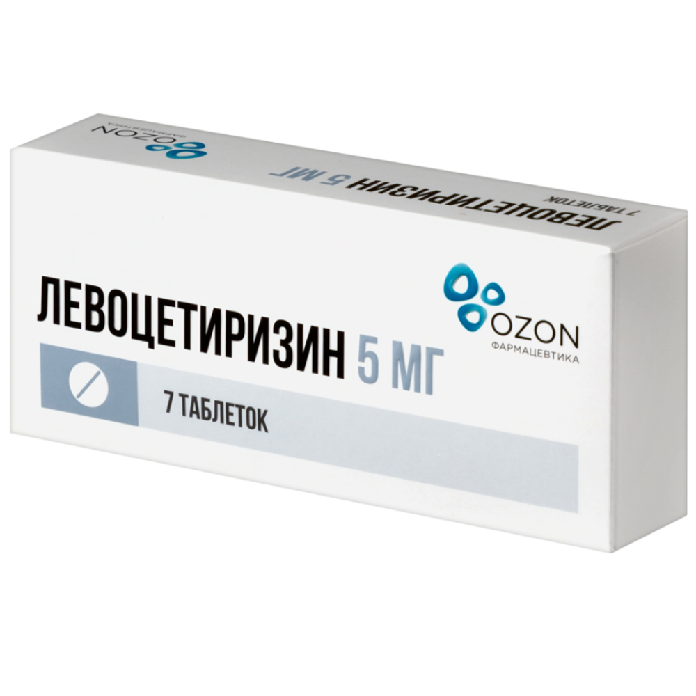 В ряде случаев при одновременном применении левоцетиризина с алкоголем или лекарственными препаратами, оказывающими подавляющее влияние на центральную нервную систему (ЦНС), может вызвать заторможенность и ухудшение работоспособности.Действующее вещество: левоцетиризина дигидрохлорид - 5 мг.