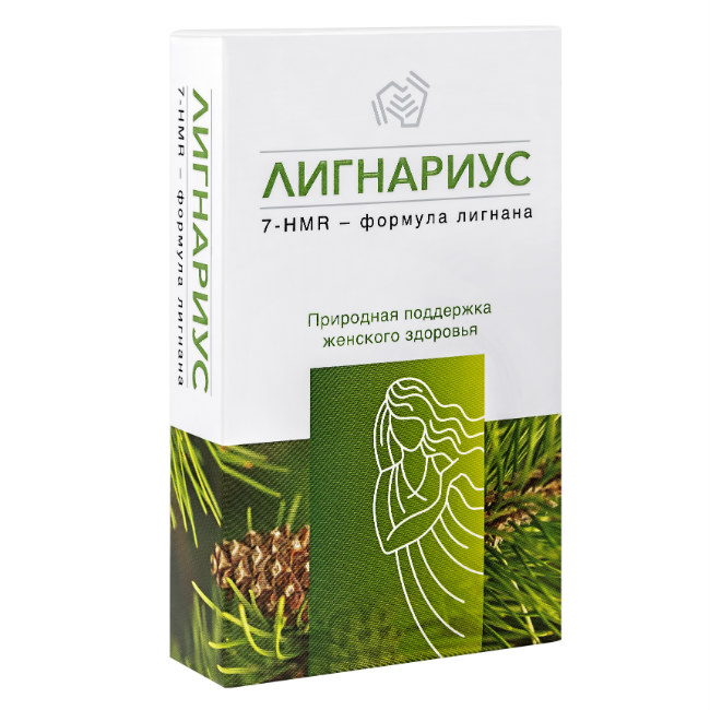 Лигнариус™ - биологически активная добавка к пище, содержит запатентованную формулу лигнана, выделенную из сучков ели европейской (PiceaAbies), содержащей максимальное количество лигнана (7-гидроксиматаирезинол), который оказывает положительный эффект на общее состояние женского организма в период перименопаузы, менопаузы и постменопаузы.