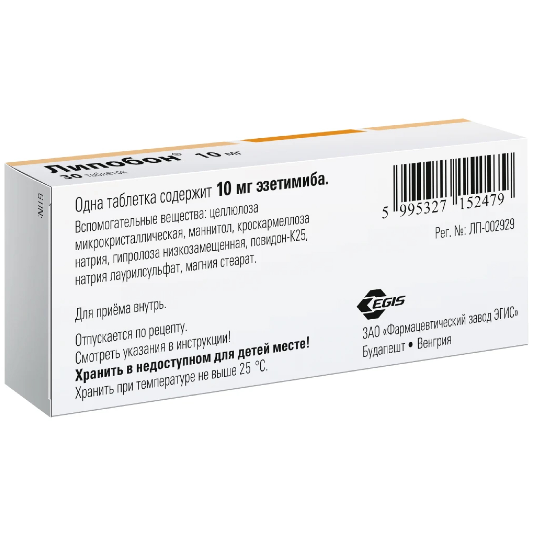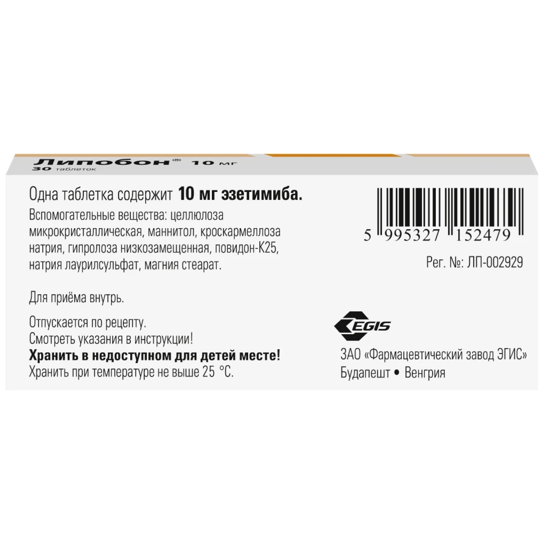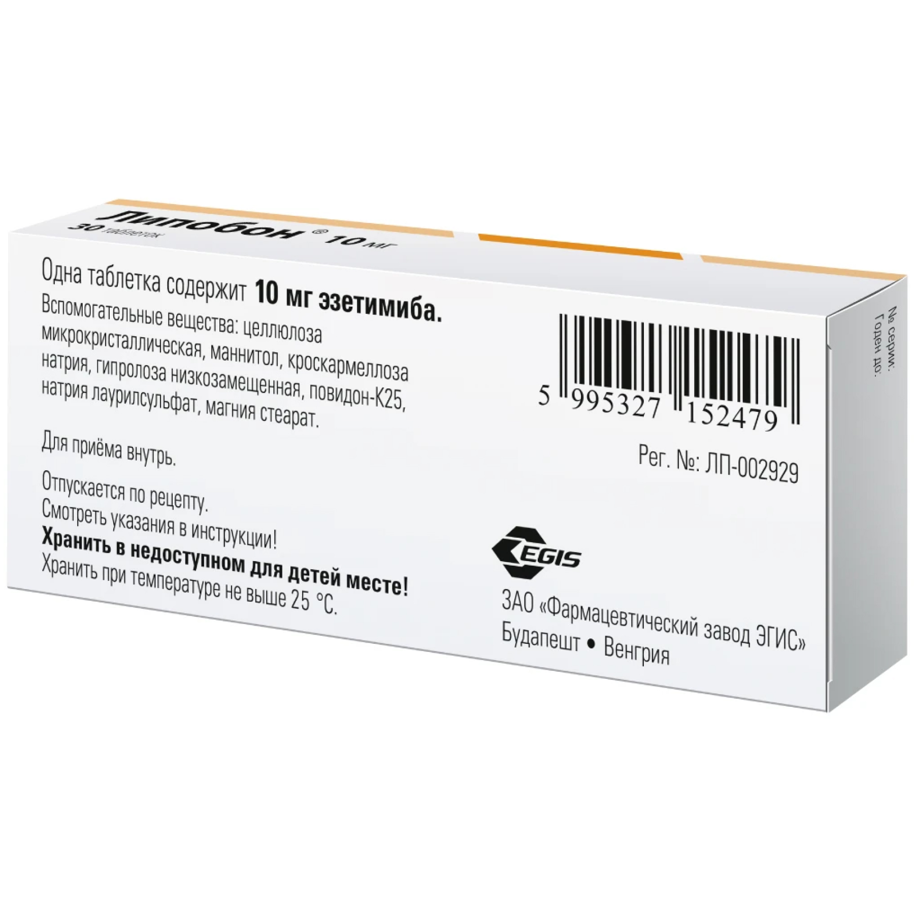 Активное вещество: эзетимиб 10 мг.