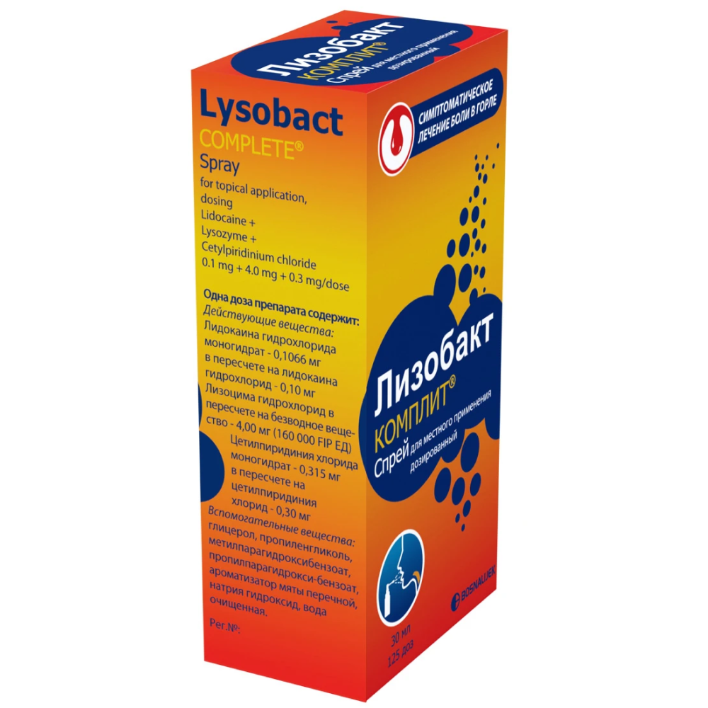 Несмотря на то, что биологическая доступность лидокаина достаточно низкая, она может оказаться достаточной для того, чтобы привести к значительной интоксикации при проглатывании препарата. Зарегистрированы случаи токсического воздействия на ЦНС, судорог и смерти после проглатывания препаратов, предназначенных для местного применения. Тем не менее, в случае с препаратом Лизобакт Комплит® требуется проглотить свыше 1 л спрея, чтобы количество лидокаина (0.5 г или больше) было достаточным для формирования клинически значимого токсического эффекта.