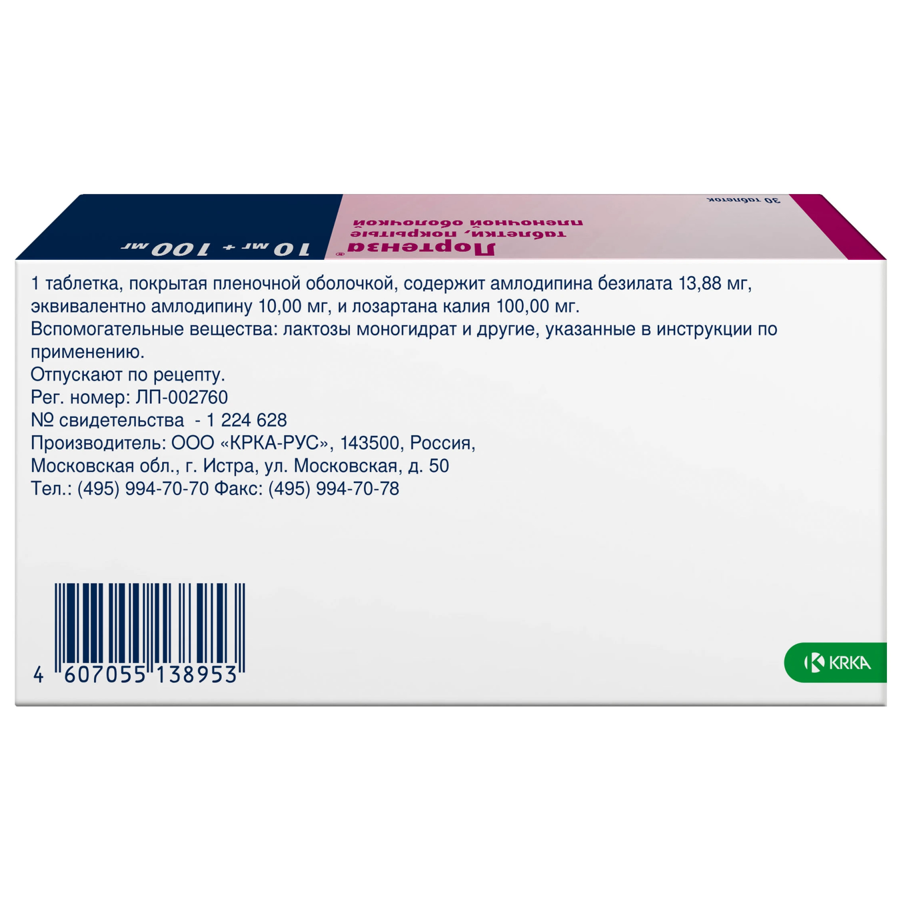 Активные вещества: амлодипин 10 мг, лозартан калия 100 мг.