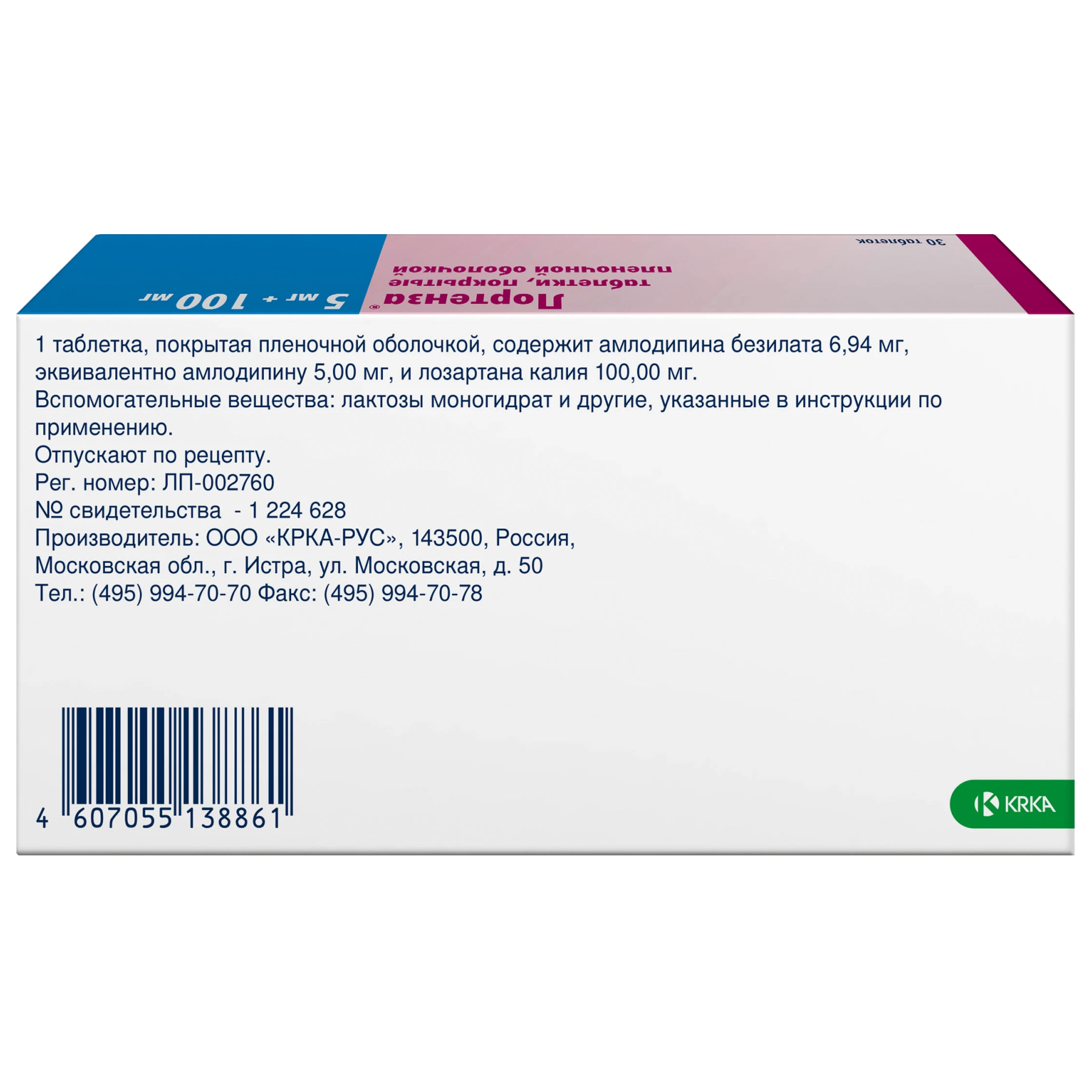 Действующие вещества: Амлодипина безилат (амлодипина бесилат) 6,94 мг, эквивалентно амлодипину 5,00 мг Лозартан А, субстанция-гранулы 327,10 мг, содержит лозартана калия 100,00 мг.