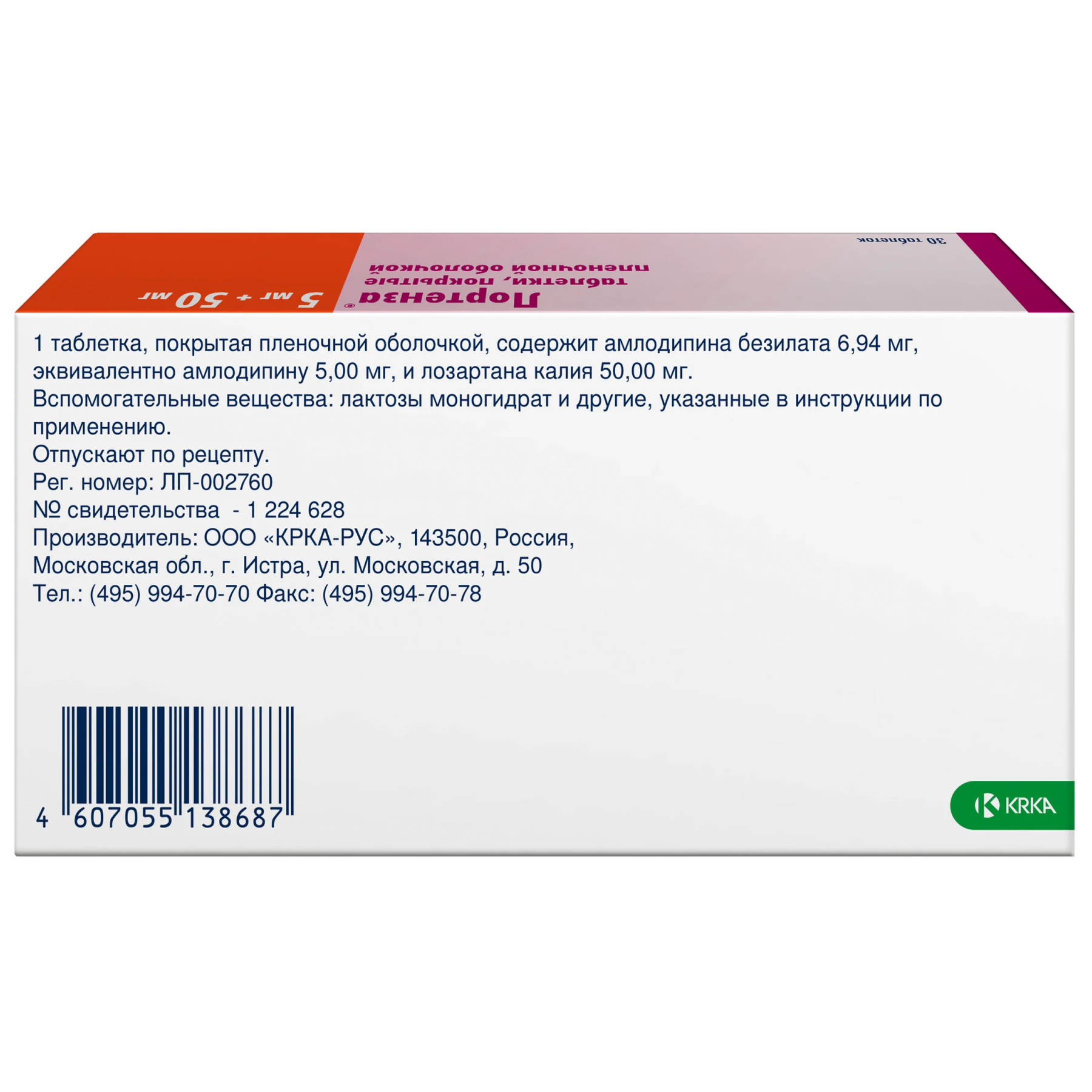 Действующие вещества: амлодипина безилат (амлодипина бесилат) 6,94 мг, эквивалентно амлодипину 5,00 мг, Лозартан А, субстанция-гранулы 163,55 мг, содержит лозартана калия 50,00 мг.