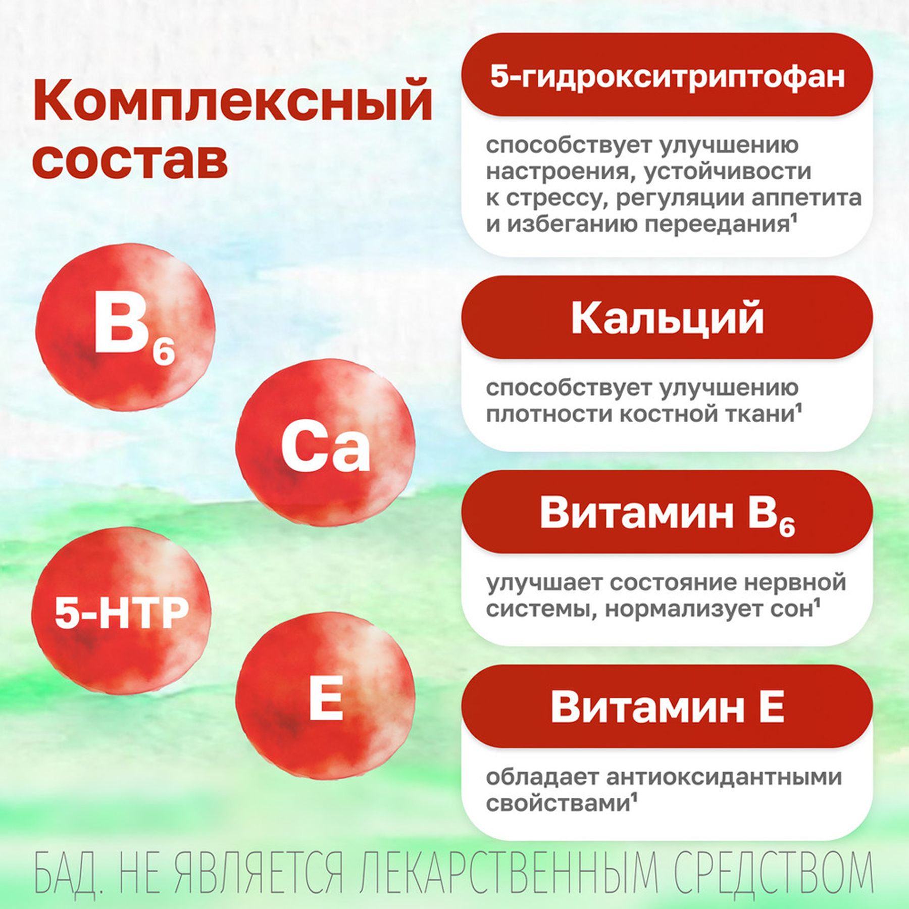5-гидрокситриптофан аминокислота, которая содержится в семенах гриффонии простолистной (Griffonia simplicifolia). 5-гидрокситриптофан является прямым предшественником серотонина - особого вещества, который играет важную роль в регуляции настроения, способствует устойчивости к стрессу, регуляции аппетита. 5-гидрокситриптофан необходим для образования мелатонина - вещества, играющего важную роль в регуляции циклов сна и бодрствования, в терморегуляции. Дополнительный прием 5-гидрокситриптофана может способствовать поддержанию уровней серотонина и мелатонина в организме, тем самым способствует улучшению состояния женщины в период менопаузы.