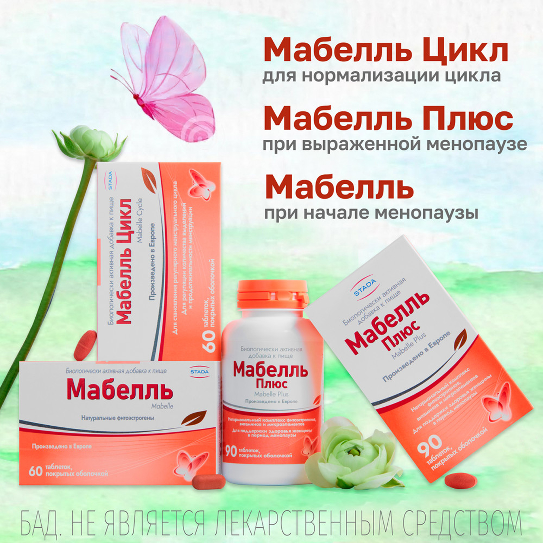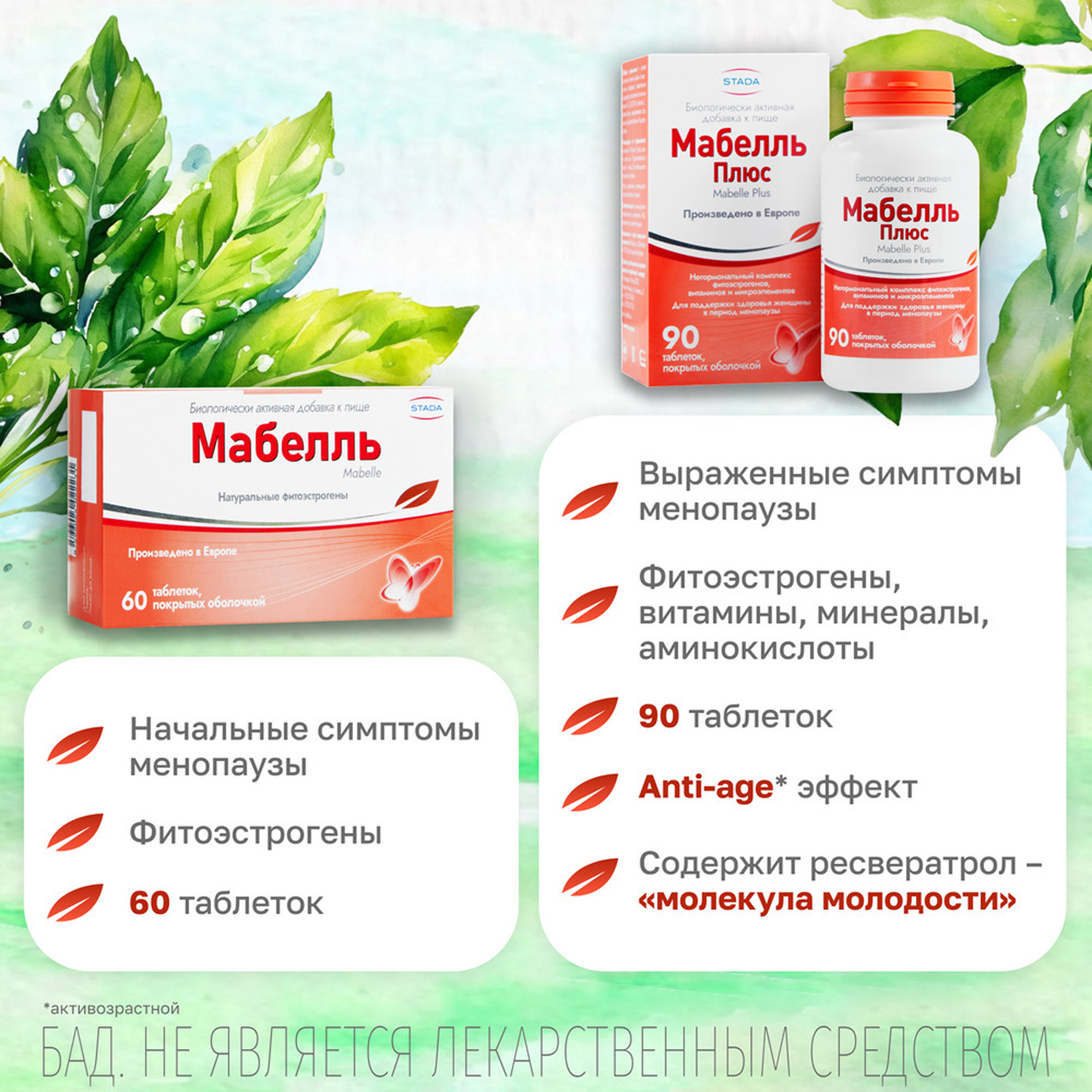 Мабелль Плюс (Mabelle Plus) - негормональный комплекс фитоэстрогенов, витаминов и микроэлементов, для поддержки здоровья женщины в период менопаузы.