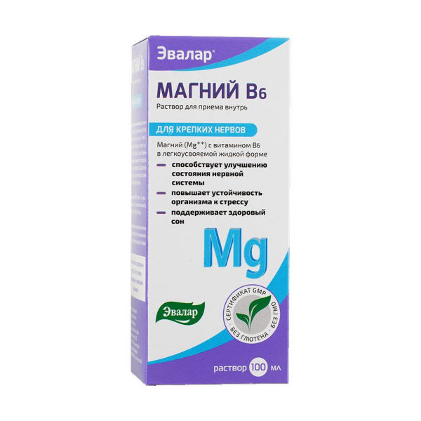 Магний B6 раствор Эвалар способствует улучшению состояния нервной системы.