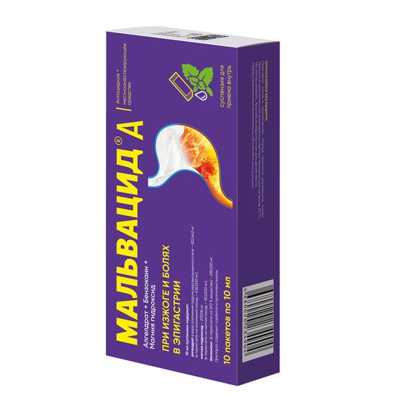 По 5–10 мл (1–2 мерные ложки по 5 мл) или по 10 мл (1 пакет) 3–4 раза в день за 10–15 минут до еды. Максимальная длительность лечения составляет 7 дней, затем переходят на лечение препаратом Мальвацид®.
