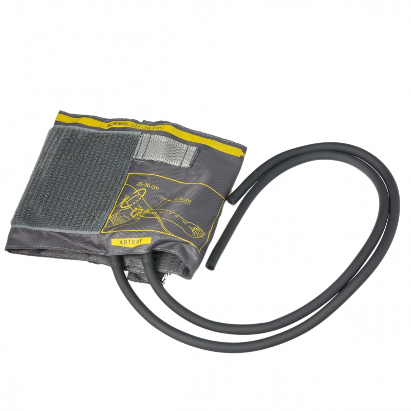 Манжета для механических тонометров классического типа с двумя трубками. Пневмокамера изготовлена из латекса, покрытие манжеты из нейлона. Размер манжеты 25-36см (стандартная).