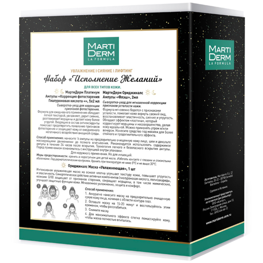 • Маска «Увлажняющая», 25 мл: интенсивная увлажняющая маска, которая улучшает текстуру, упругость и эластичность кожи.