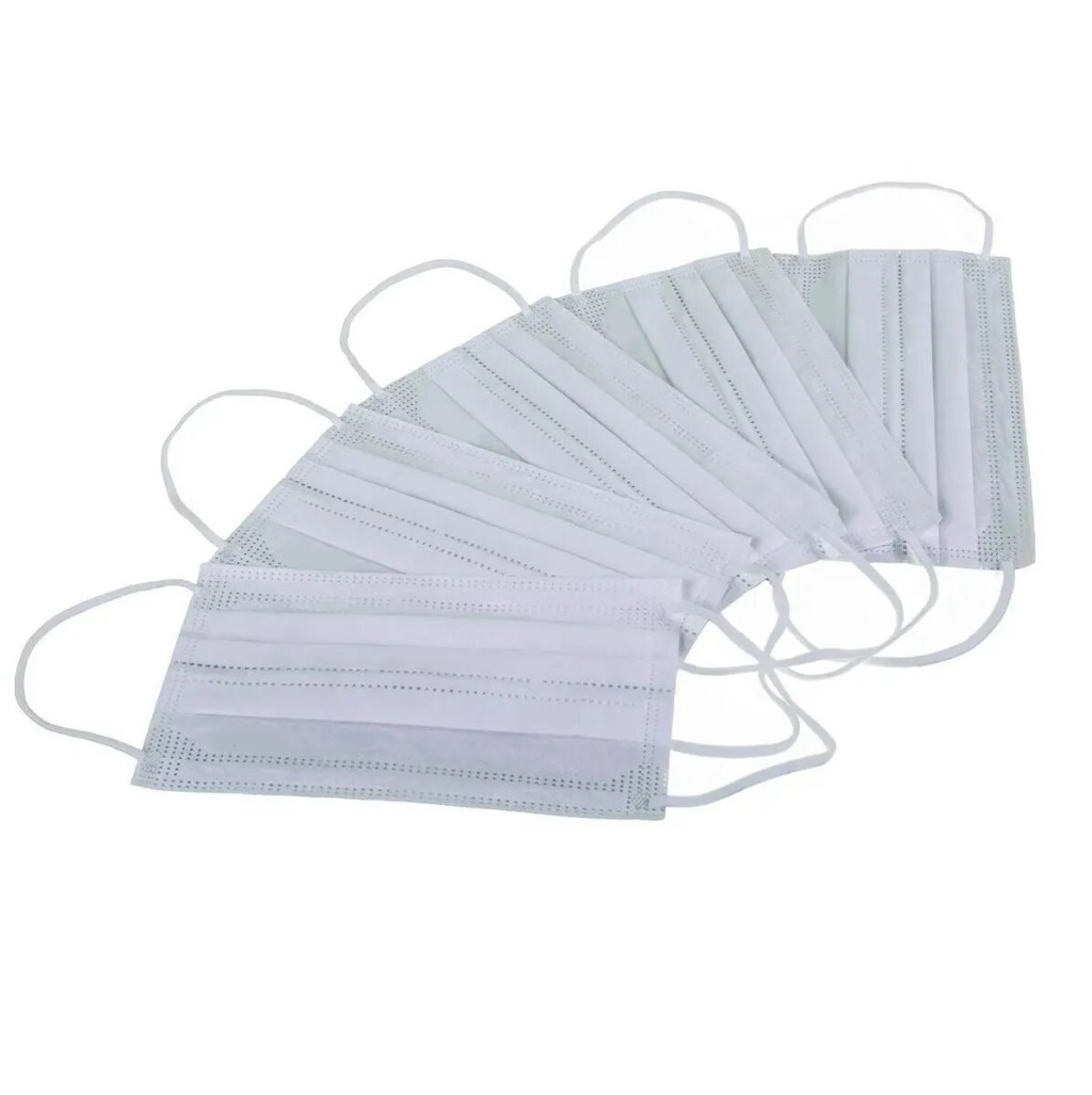 Маска медицинская 3-слойная белая на резинках 50 шт