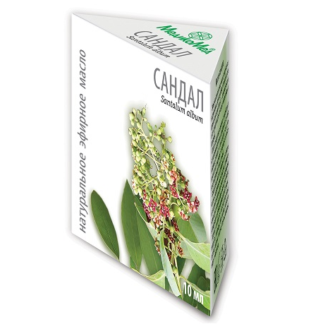 Эфирное масло сандала белого (Santalum album) применяется как средство, разглаживающее и оживляющее зрелую кожу. Аромат сандала помогает при бронхите, кашле, облегчает состояние при депрессии и бессоннице. Хорошо сочетается с ароматами фиалки, розы, гвоздики, туберозы, лаванды, бергамота, розового дерева, герани, ладана, пачули, мимозы, мирры и жасмина.