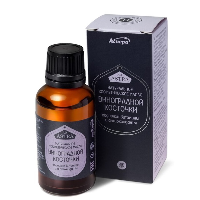 100% масло из семян винограда, полученное методом горячей экстракции: витаминно-антиоксидатный комплекс витамин С.