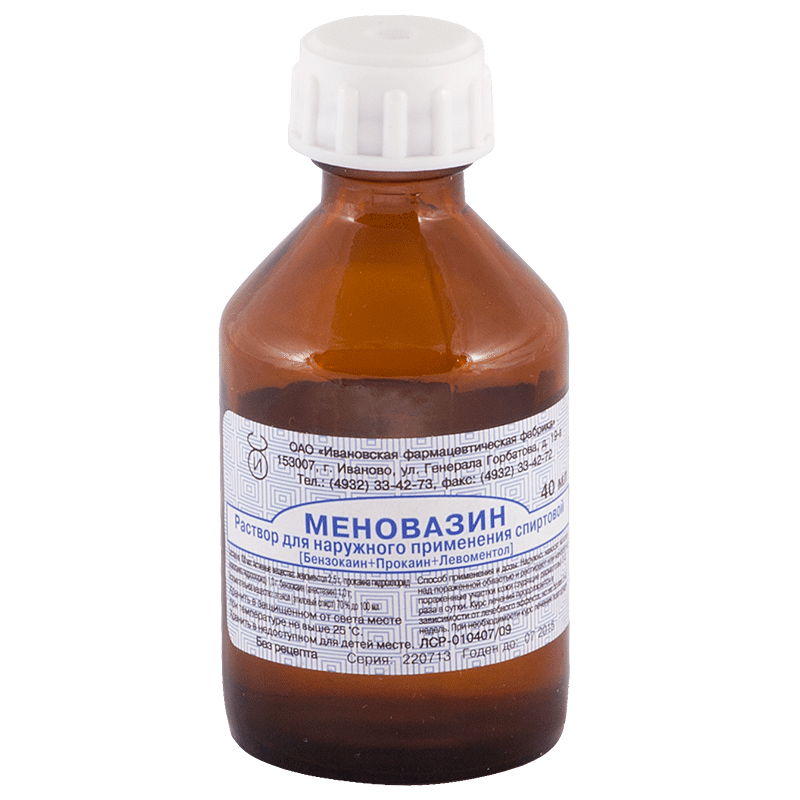 Активные вещества: левоментол - 2.5 г; прокаина гидрохлорид (новокаина гидрохлорид) - 1 г; бензокаин (анестезин) - 1 г;
