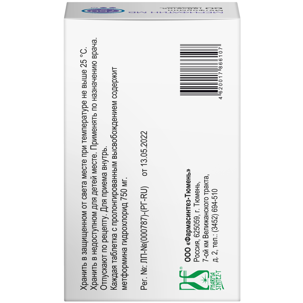 Действующее вещество: метформина гидрохлорид - 750 мг.