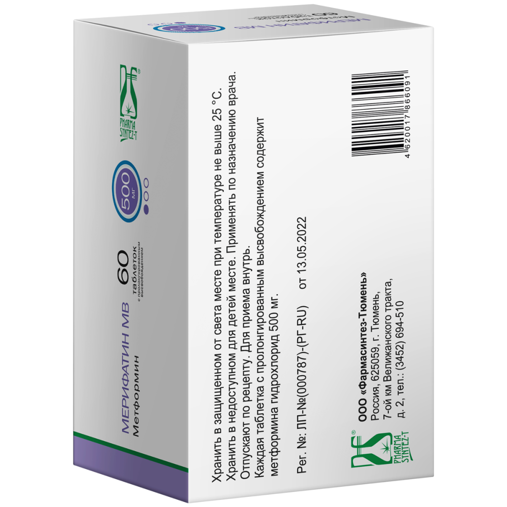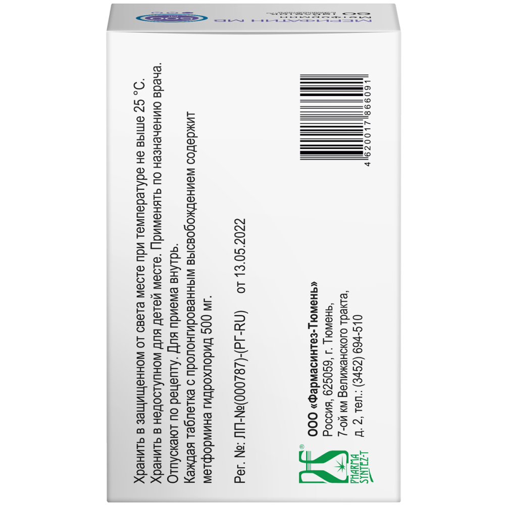 Действующее вещество: метформина гидрохлорид - 500 мг.