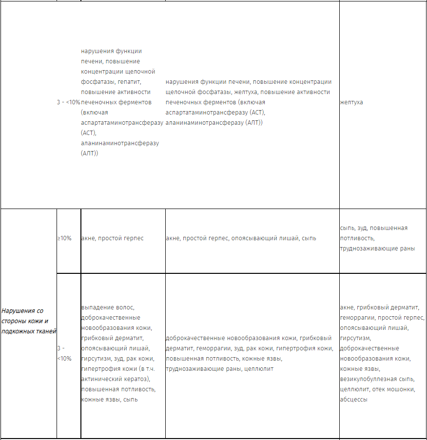Инфекции: отдельные случаи тяжелых, угрожающих жизни инфекций (менингита, инфекционного эндокардита), повышение частоты некоторых инфекций типа туберкулеза и атипичных микобактериальных инфекций.