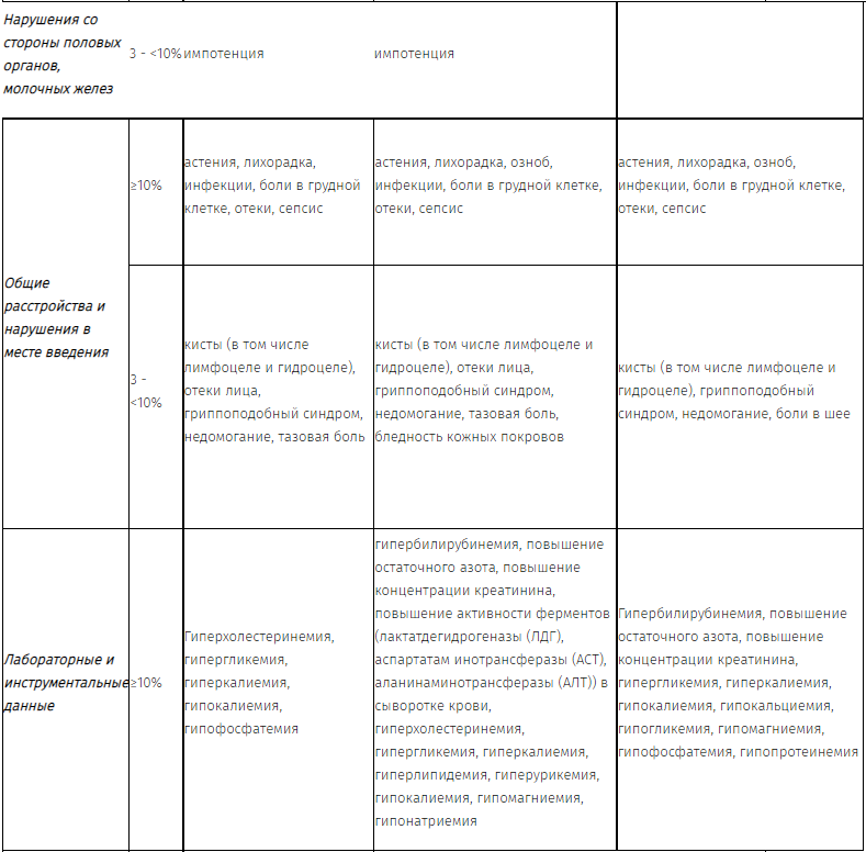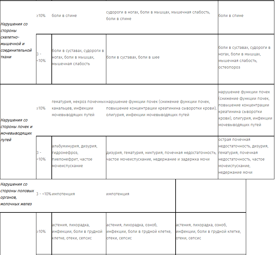 Нежелательные явления, отмеченные у ≥10% и у 3-10% больных, получавших ММФ в комбинации с циклоспорином и глюкокортикостероидами в контролируемых исследованиях по профилактике отторжения почечного трансплантата (3 исследования, данные по суточной дозе 2 и 3 мг), в контролируемом исследовании по пересадке сердца и в контролируемом исследовании по пересадке печени.