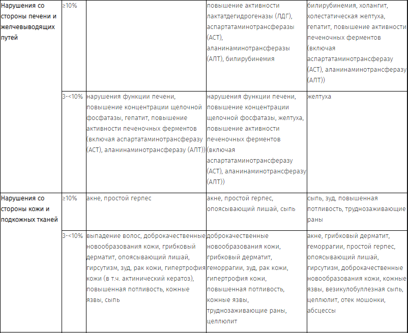 Инфекции: отдельные случаи тяжелых, угрожающих жизни инфекций (менингита, инфекционного эндокардита), повышение частоты некоторых инфекций типа туберкулеза и атипичных микобактериальных инфекций.