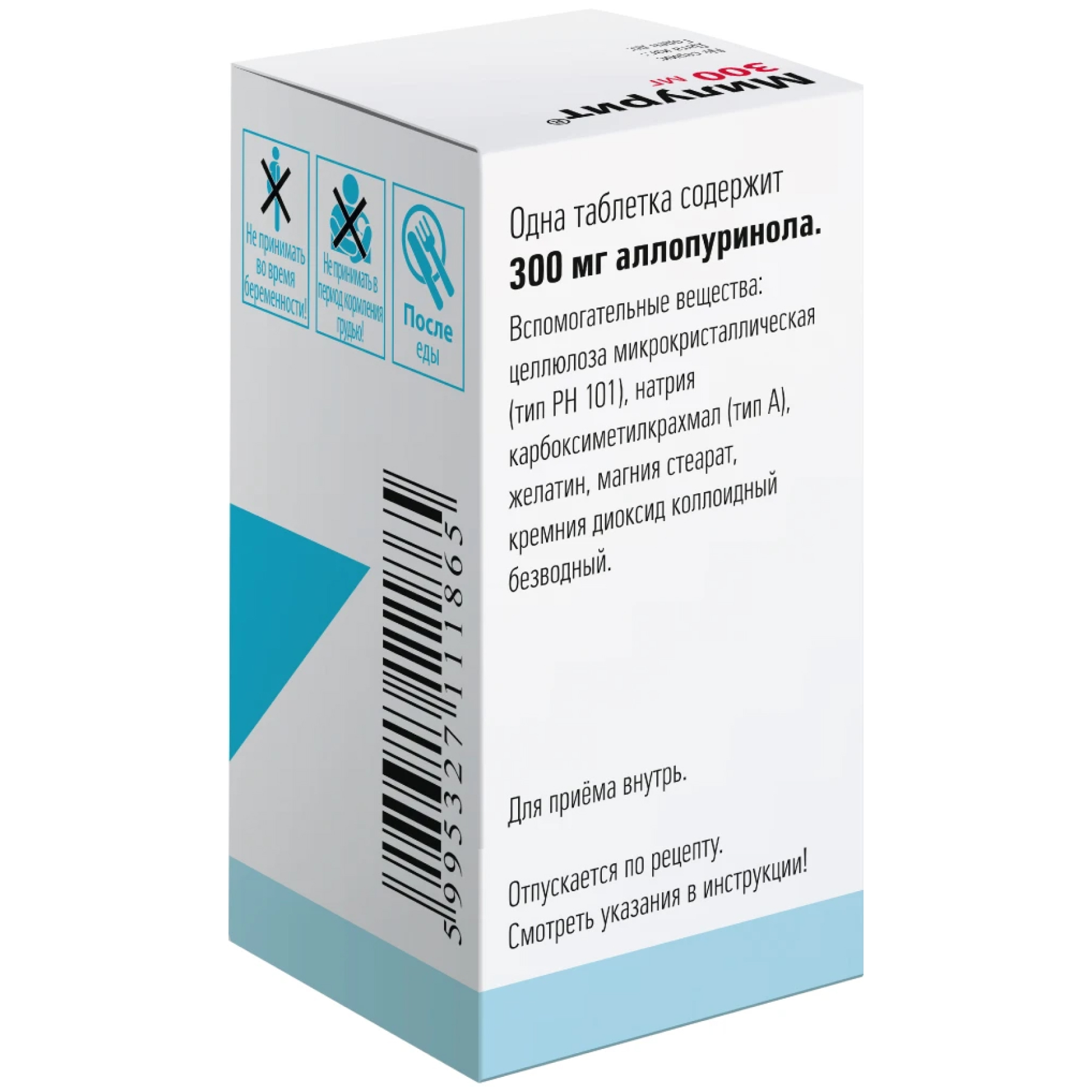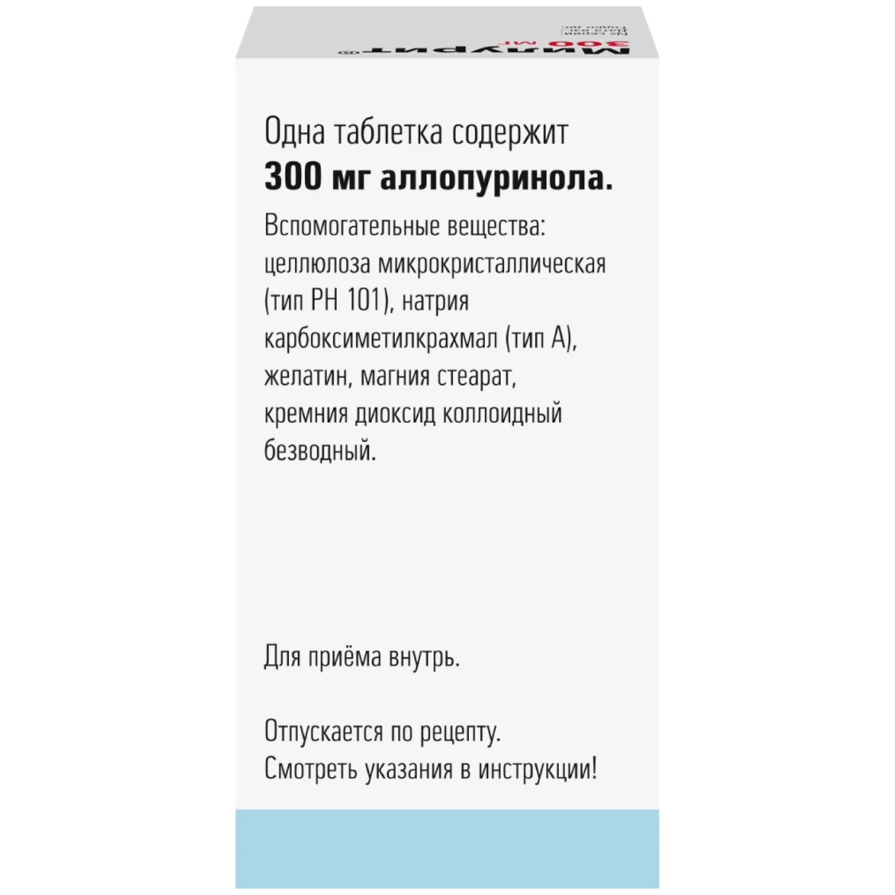 Лечение: специфический антидот аллопуринола неизвестен. Адекватная гидратация, поддерживающая оптимальный диурез, способствует выведению аллопуринола и его производных с мочой. При наличии клинических показаний выполняется гемодиализ.