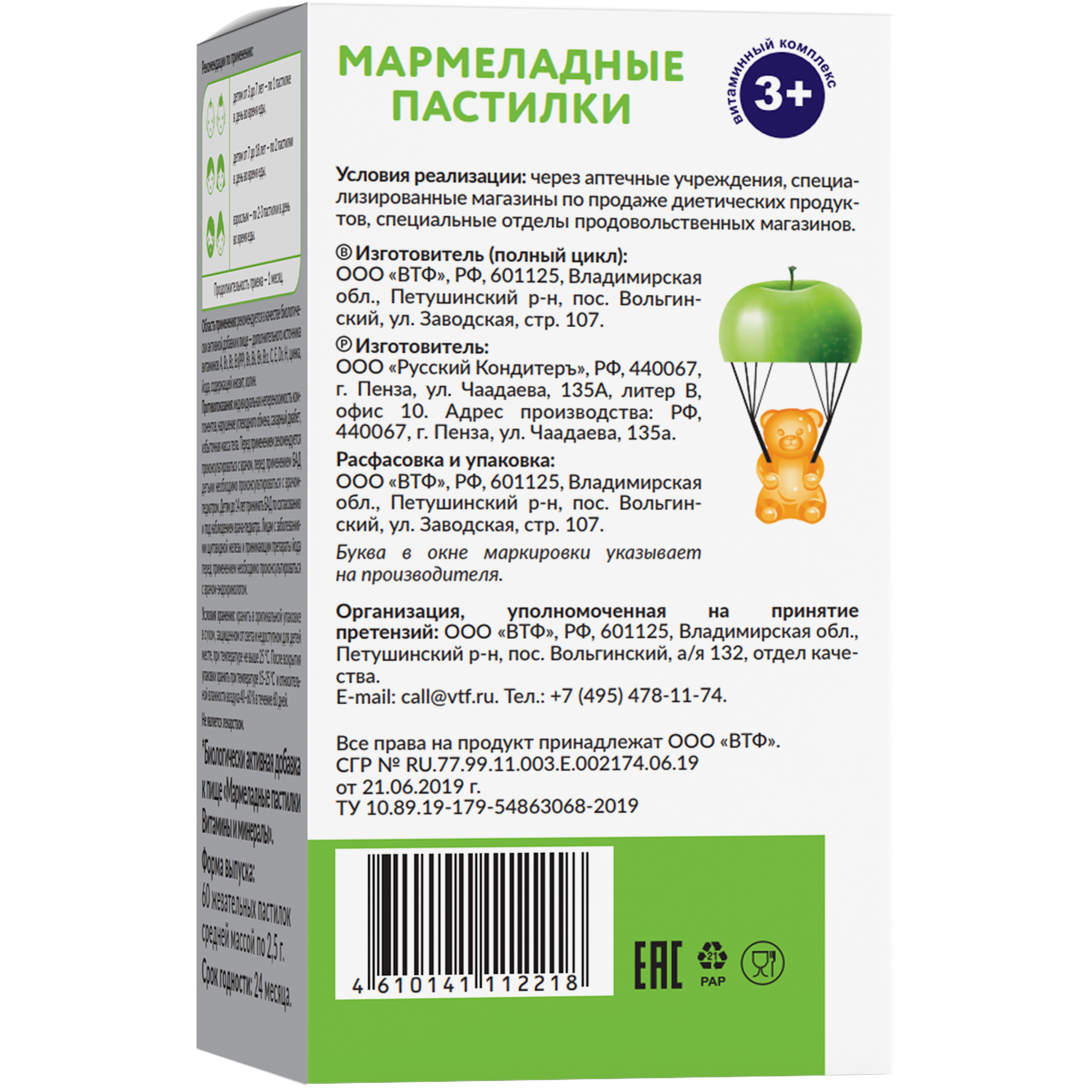 «Мармеладные пастилки Витамины и минералы» — комплекс, охватывающий большую группу органических соединений и минеральных веществ, которые способствуют интеллектуальному развитию детей, укреплению памяти, повышению концентрации внимания, активизации познавательных функций, поддержанию нормальной работы головного мозга.